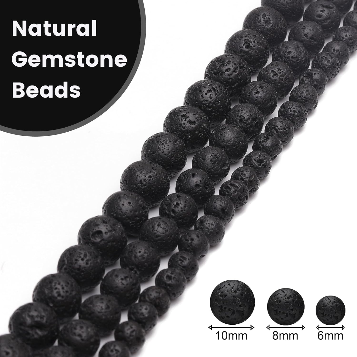 6mm Natural Stone Beads for Jewelry Making,Black Lava Polished Smooth Round Gemstone Beads for Bracelet Necklace 15 Inch