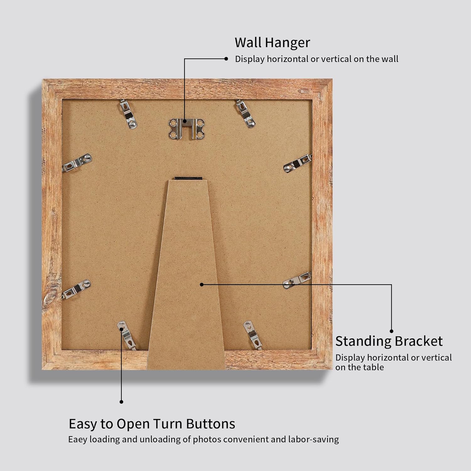 • Multi Frames Collage Set: Includes 4 frames in the same size. Perfectly fits 8x8 inch pictures with mat or 10x10 inch without mat. The frame opening display size is 0.5 inches smaller than the photo size for secure mounting.