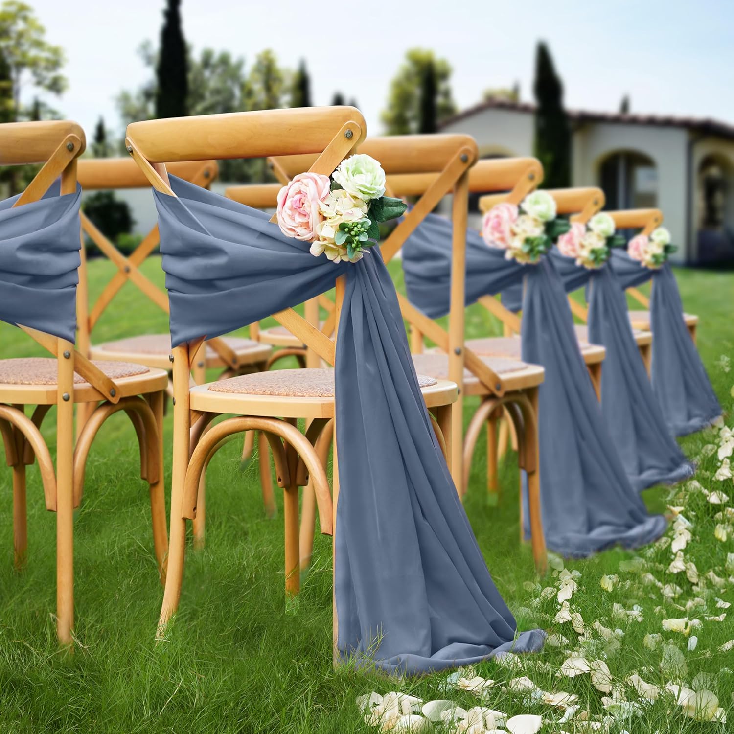VACVELT Wedding Arch Draping Fabric Dusty Blue Chiffon, 2 Panels Sheer Drapes 30 Inch x 20ft Chiffon Backdrop Curtain Wedding Decor, Outdoor Sheer Drapery for Ceremony Party Ceiling