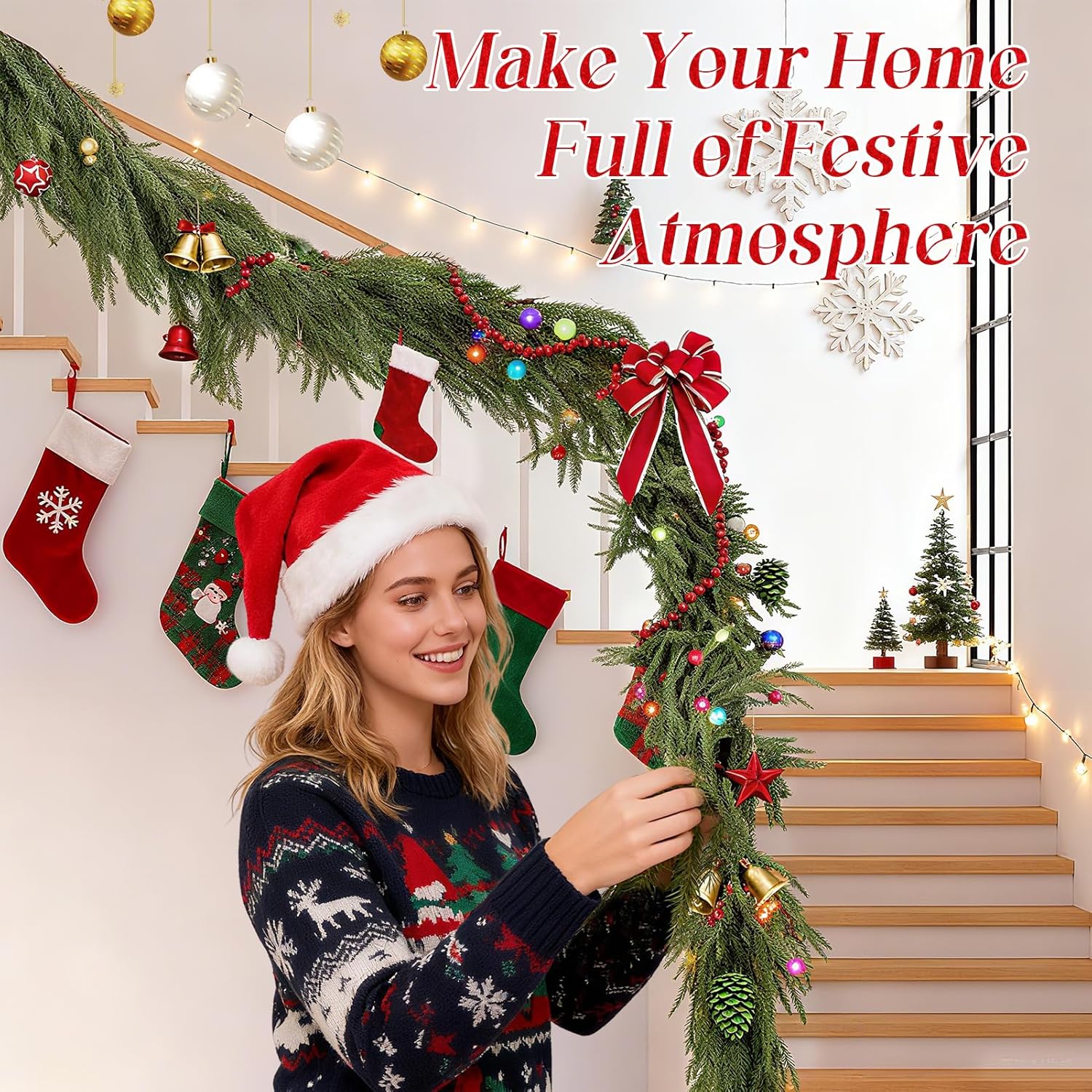 • GENEROUS LENGTH: Measuring 9 ft long, this Christmas garland provides ample length to cover large areas, whether draped over a mantle, around a porch, or used as a centerpiece on your dining table. Its flexible design allows you to easily adjust and arrange it to create your nice holiday scene.
