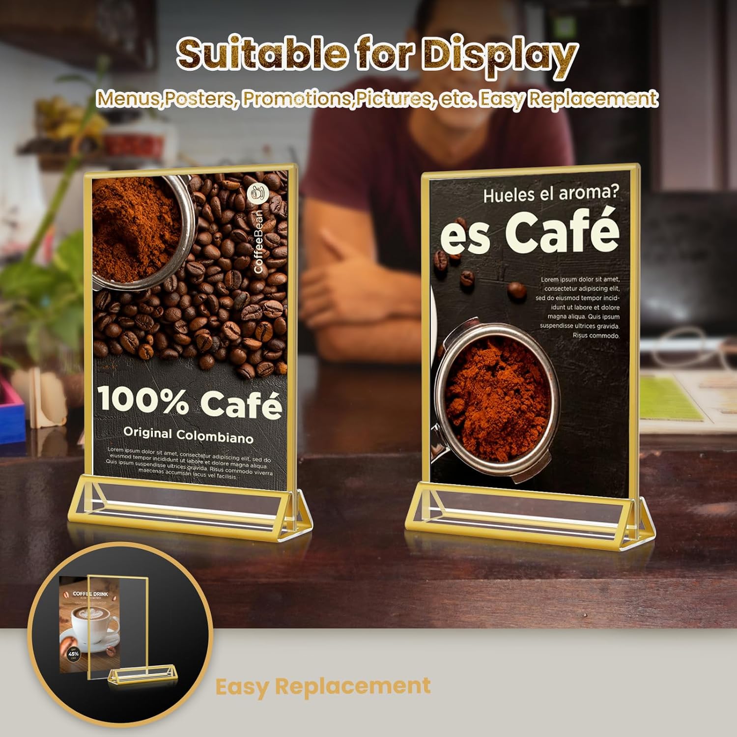 • 【Gold Picture Frames Occasions】4x6 acrylic sign holder can be used as gold picture frames, wedding table number holders, table number stands, sign holder, paper display stand, menu holder, picture holders for tables, double sided picture frame, etc.