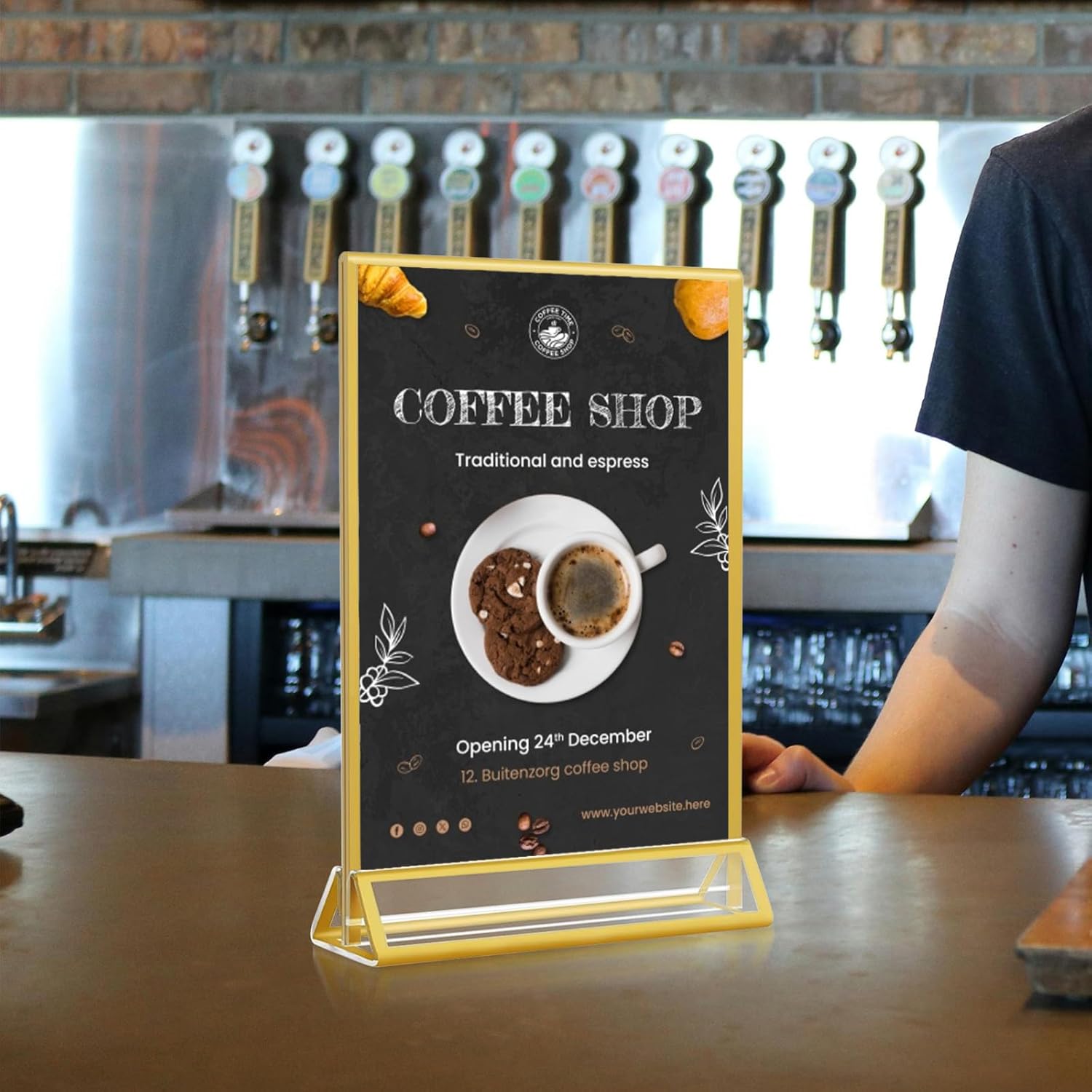 • 【EASY TO ASSEMBLE】These gold picture frames are incredibly easy to install. Simply open the double-sided display frame, place your sign inside, and insert the holder into the base. Plus, the detachable design makes them convenient to store and transport, too.