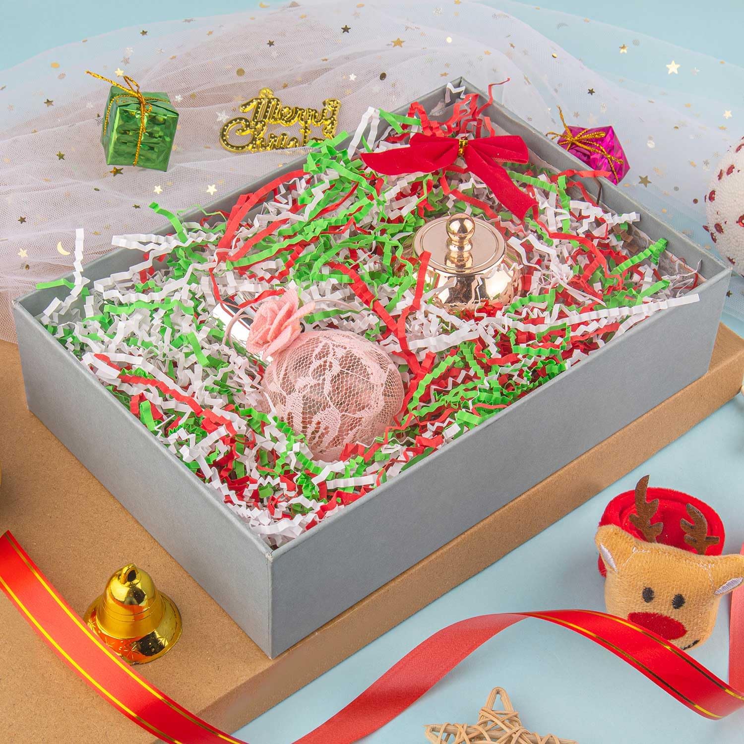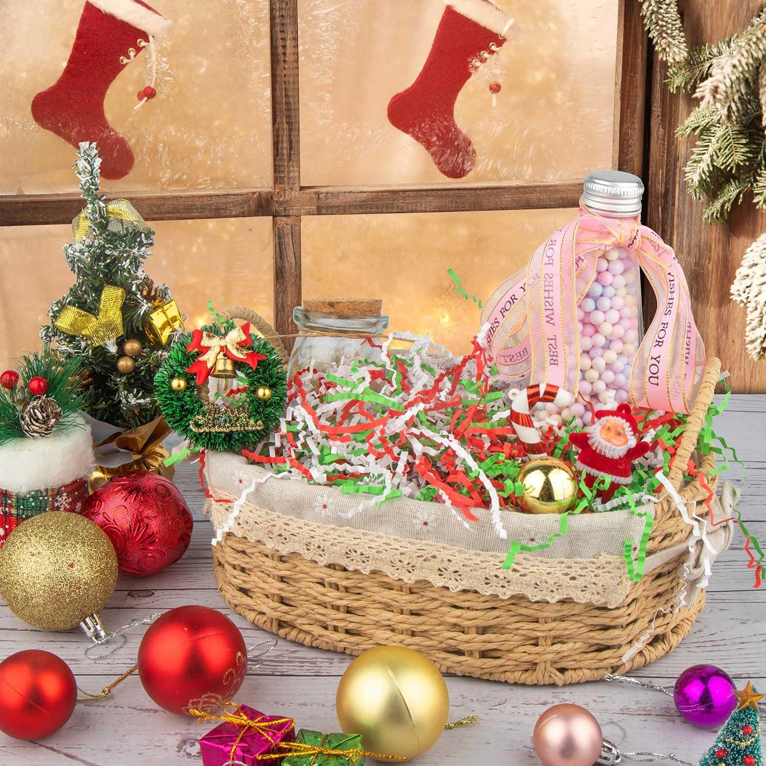 Caleihd Crinkle Cut Paper Grass Cushion Paper Streamer for Christmas Wedding Birthday Bridesmaid Engagement Craft Gift Boxes Bags Filler Decoration 4.5oz Red&Green&White