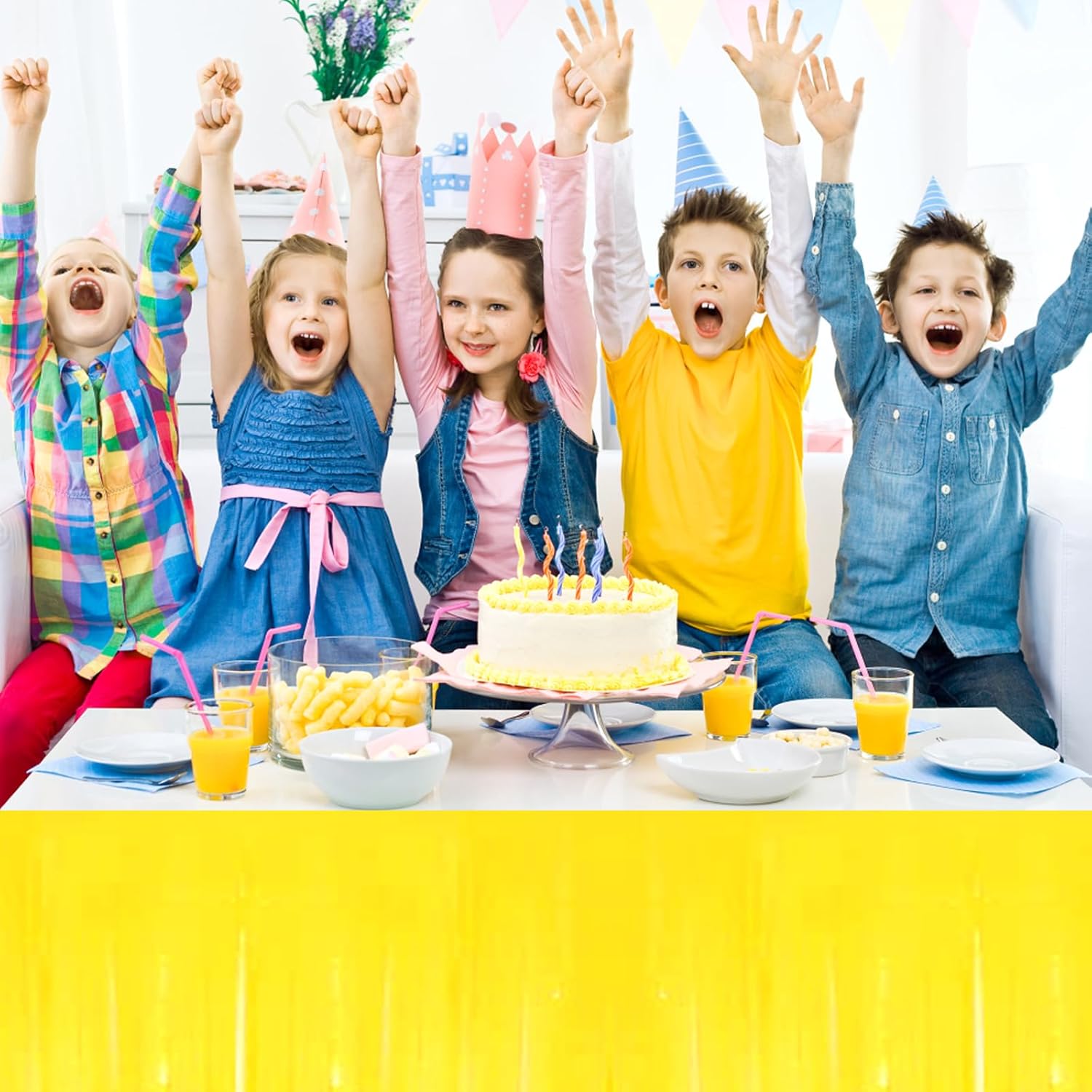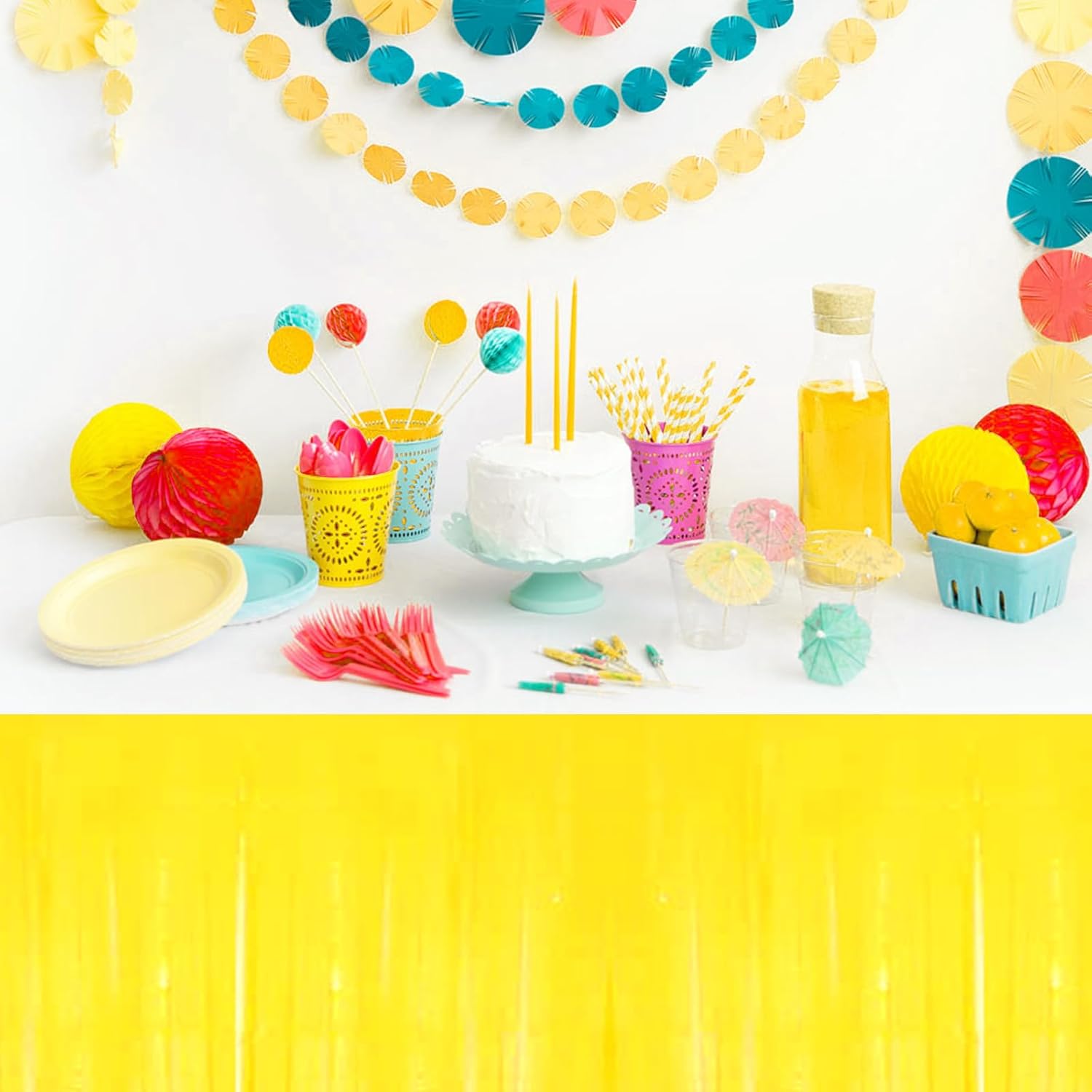 3 Pack 29 x108 Inch Macaron Yellow Foil Fringe Table Skirts Metallic Banner for Tinsel Streamer Garland Backdrop for Parade Floats Wedding Thanksgiving Birthday Christmas New Year Party Decoration