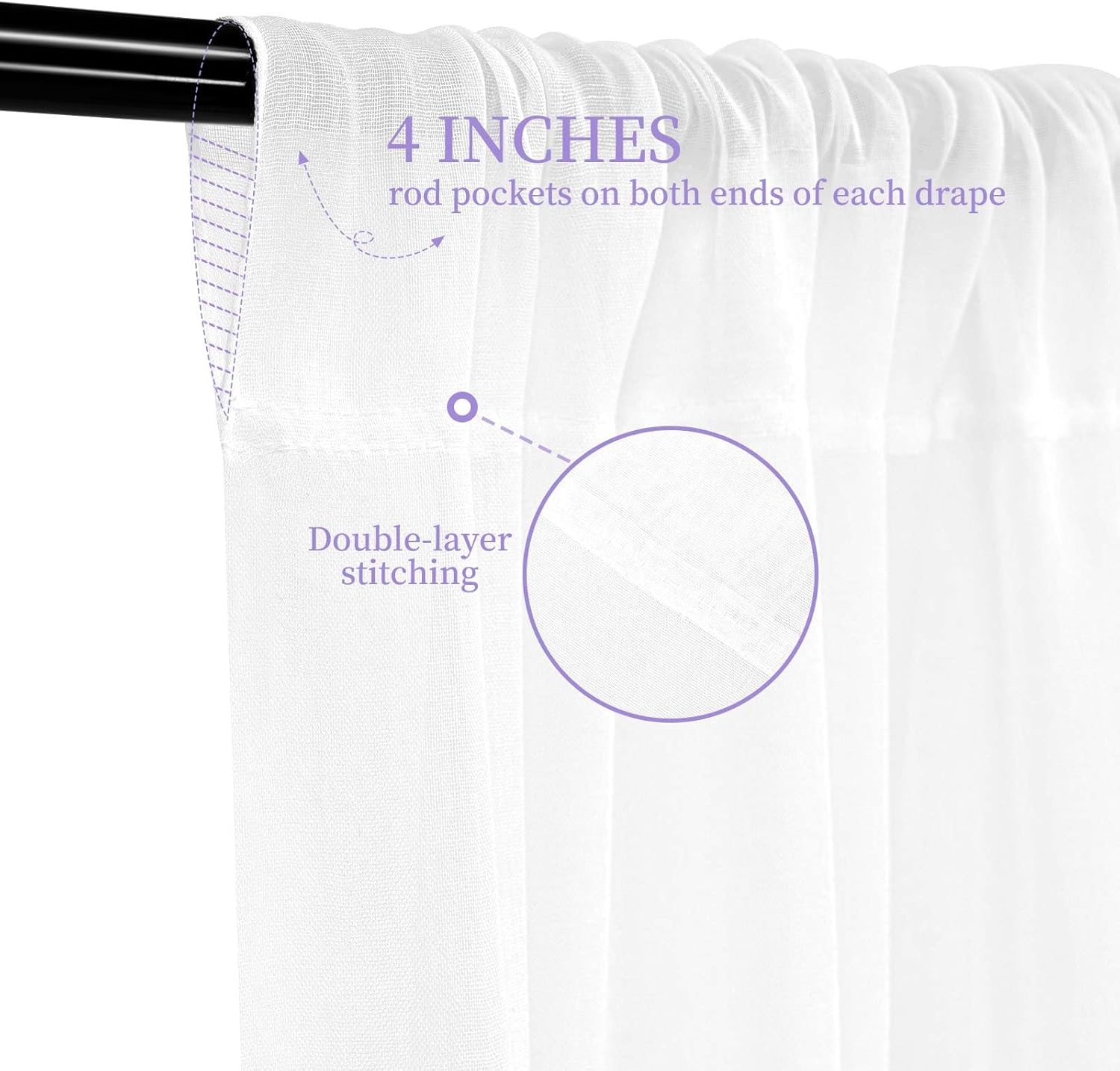 • 【Rod Pocked Design】There is a 4 inches pocket for rod or pole entry at the top and bottom of each panel creating beautiful draping. Sheer arch draping fabric are good choice to decorate your wedding and party. Different hanging methods will bring you various visual effects.