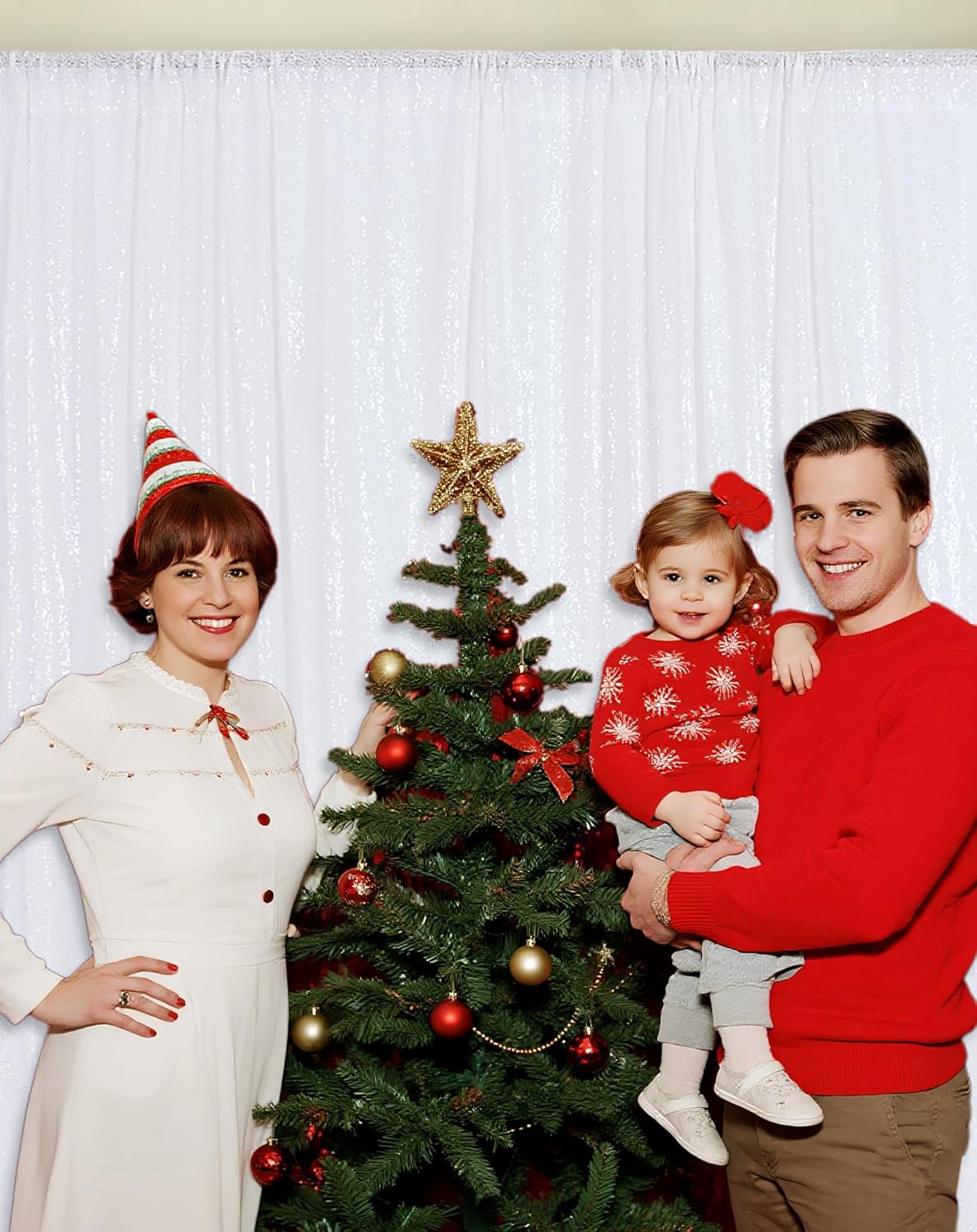 Eternal Beauty White Sequin Backdrop, 8x10 Ft Glitter Background Curtains for Christmas Shimmer Photography Party Wedding Birthday Back Drop Decor