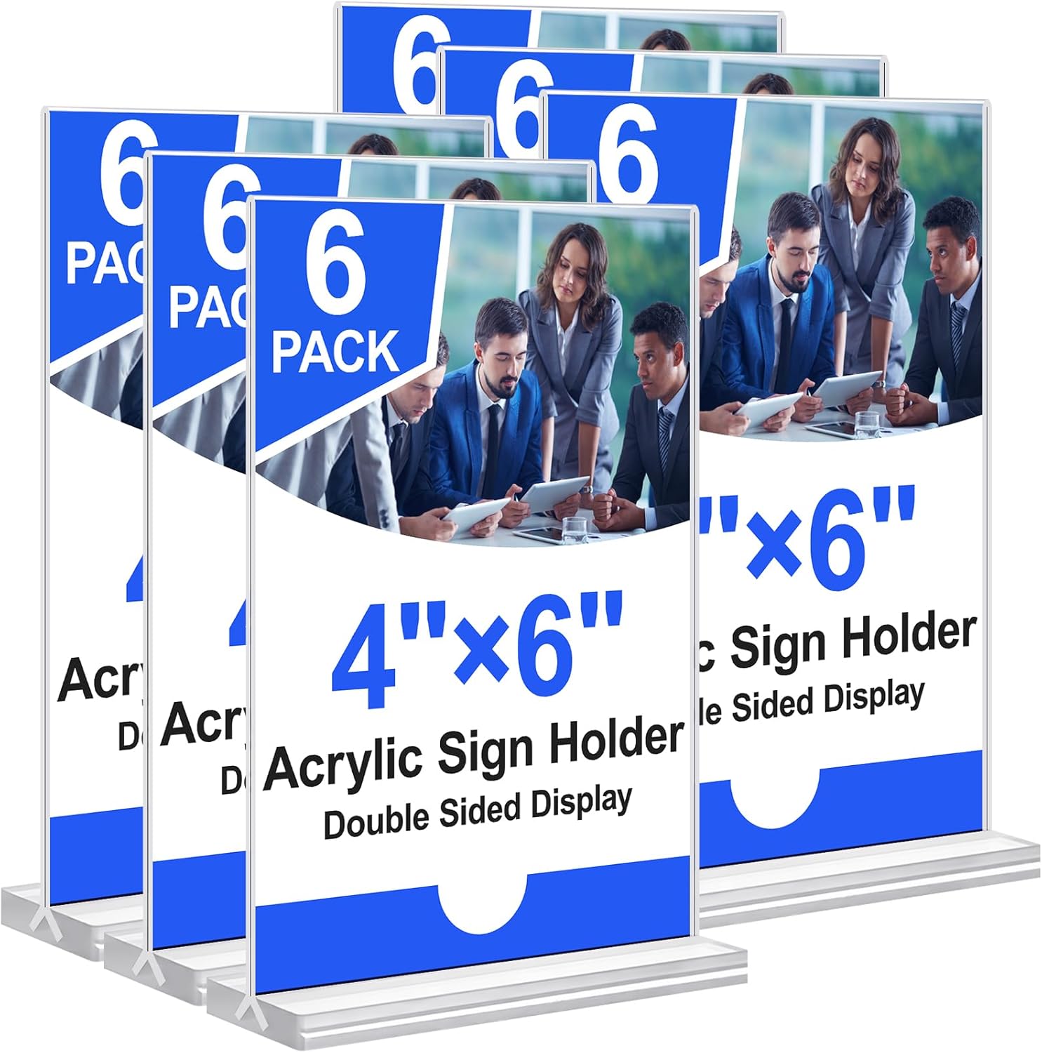 Acrylic Sign Holder 4x6 Vertical Plastic Signs Acrylic Frame Display Signs Table Stand Bulk 6 Pack