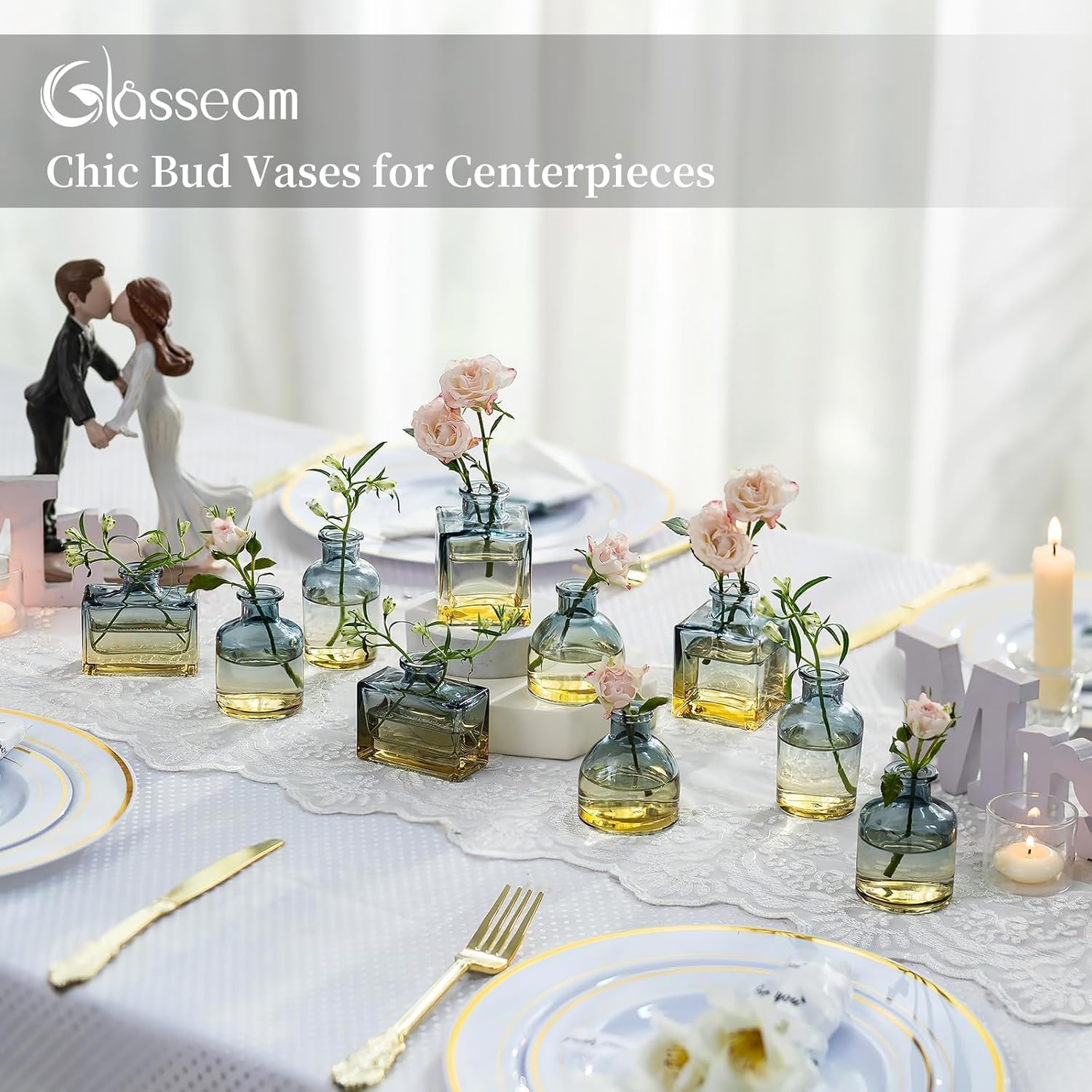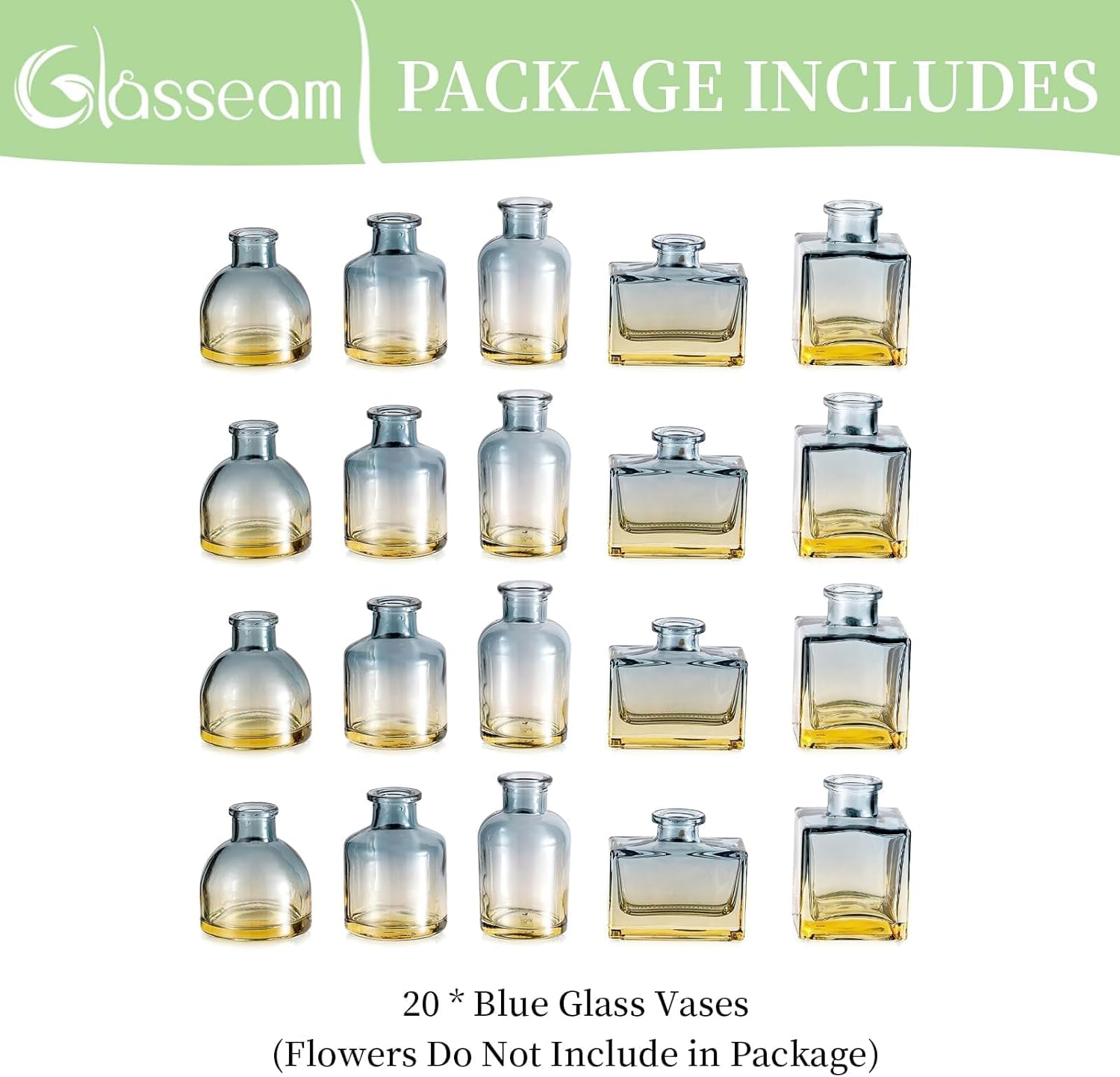 Glasseam Mini Bud Vases for Centerpieces: Clear Small Flower Vase Set of 20 Cute Tiny Glass Table Centerpieces Modern Wedding Birthday Party Baby Shower Dining Room Decoration Yellow Blue