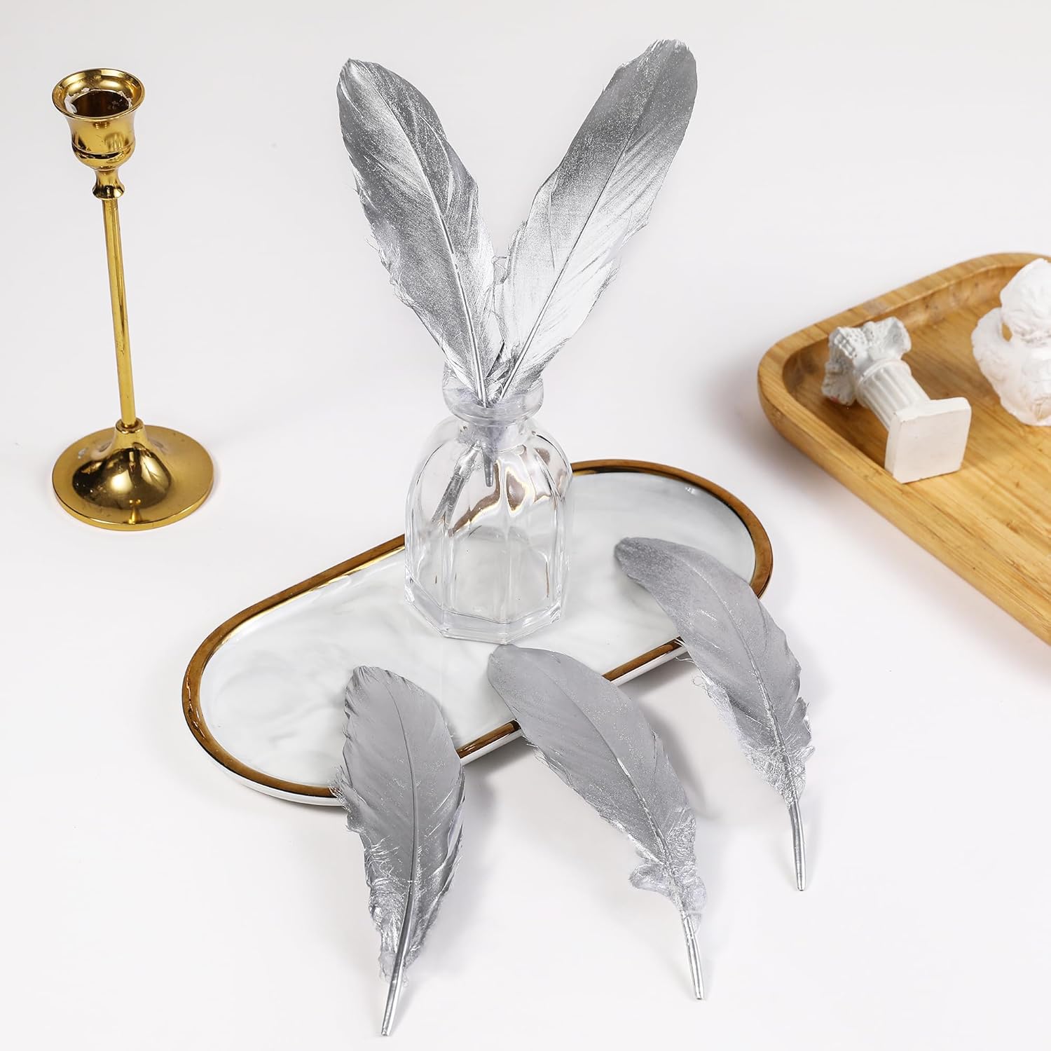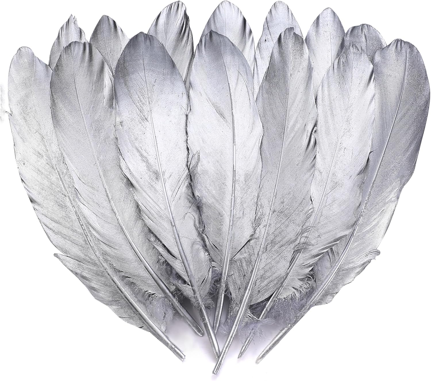 Larryhot Silver Goose Feathers for Crafts - 6-8 inch 60 pcs Natural Feathers for Wedding Party Decorations,DIY Crafts and Clothing Accessories (Silver)