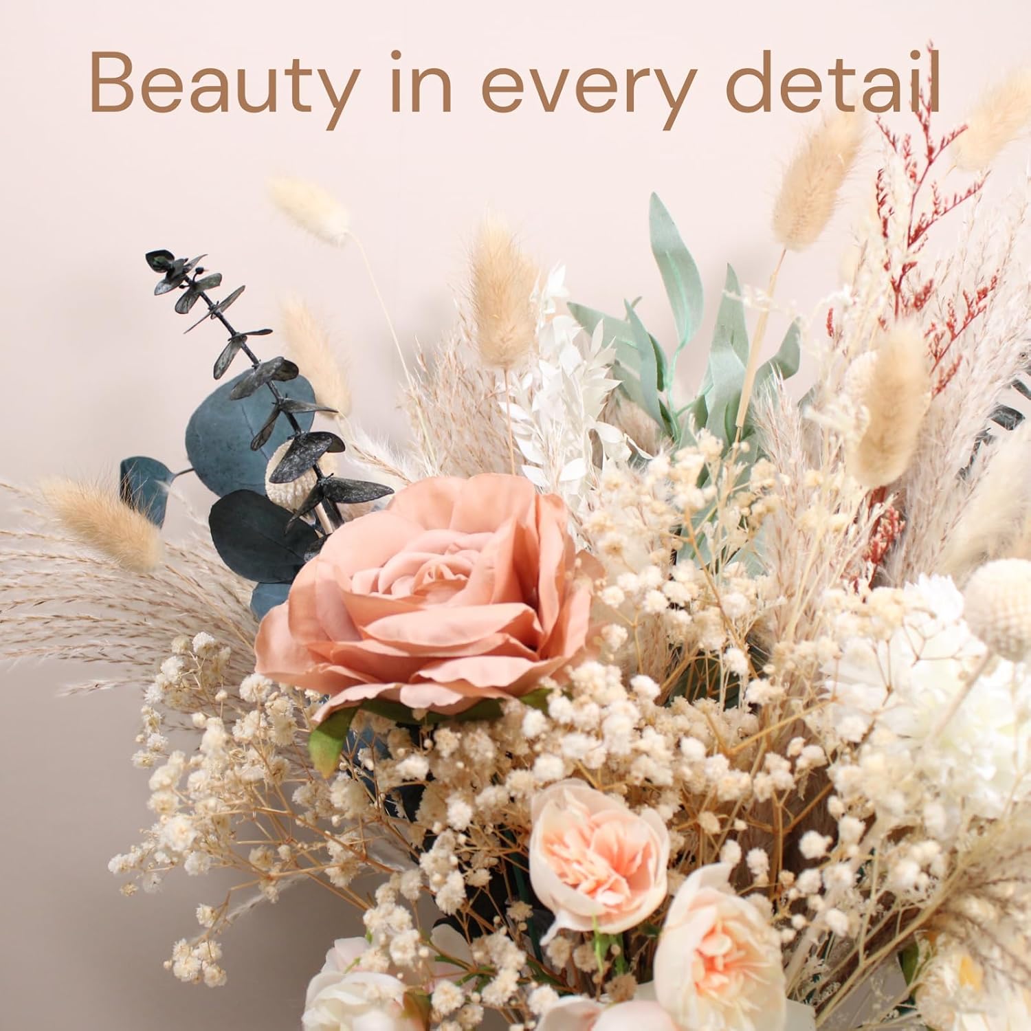 • Elegant Home Decor - Elevate your home decor living room with this stunning artificial flower and dried pampas grass floral arrangement set. Perfect for creating beautiful centerpieces for your dining table, kitchen island, living room coffee table, dresser top or entryway decor. The neutral tones and realistic design blend seamlessly with boho decor, Japandi home decor, and modern aesthetics, making this set a must-have for any stylish home.