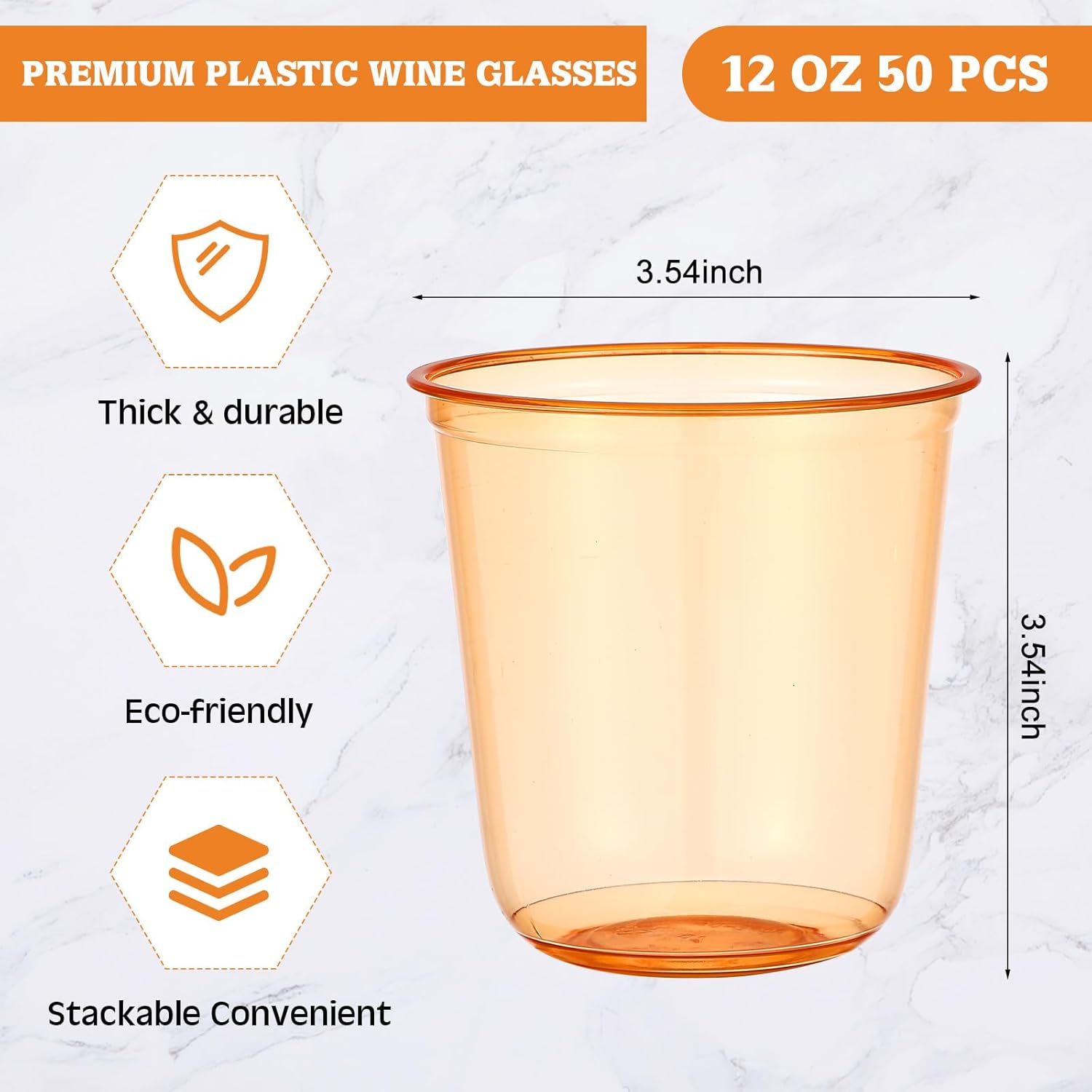 50pcs Disposable Stemless Glasses 12oz Crystal Plastic Wine Glasses Clear Classic Pet Cup for Meeting Weddings Birthdays Cocktail Christmas Party Supplies (Orange)