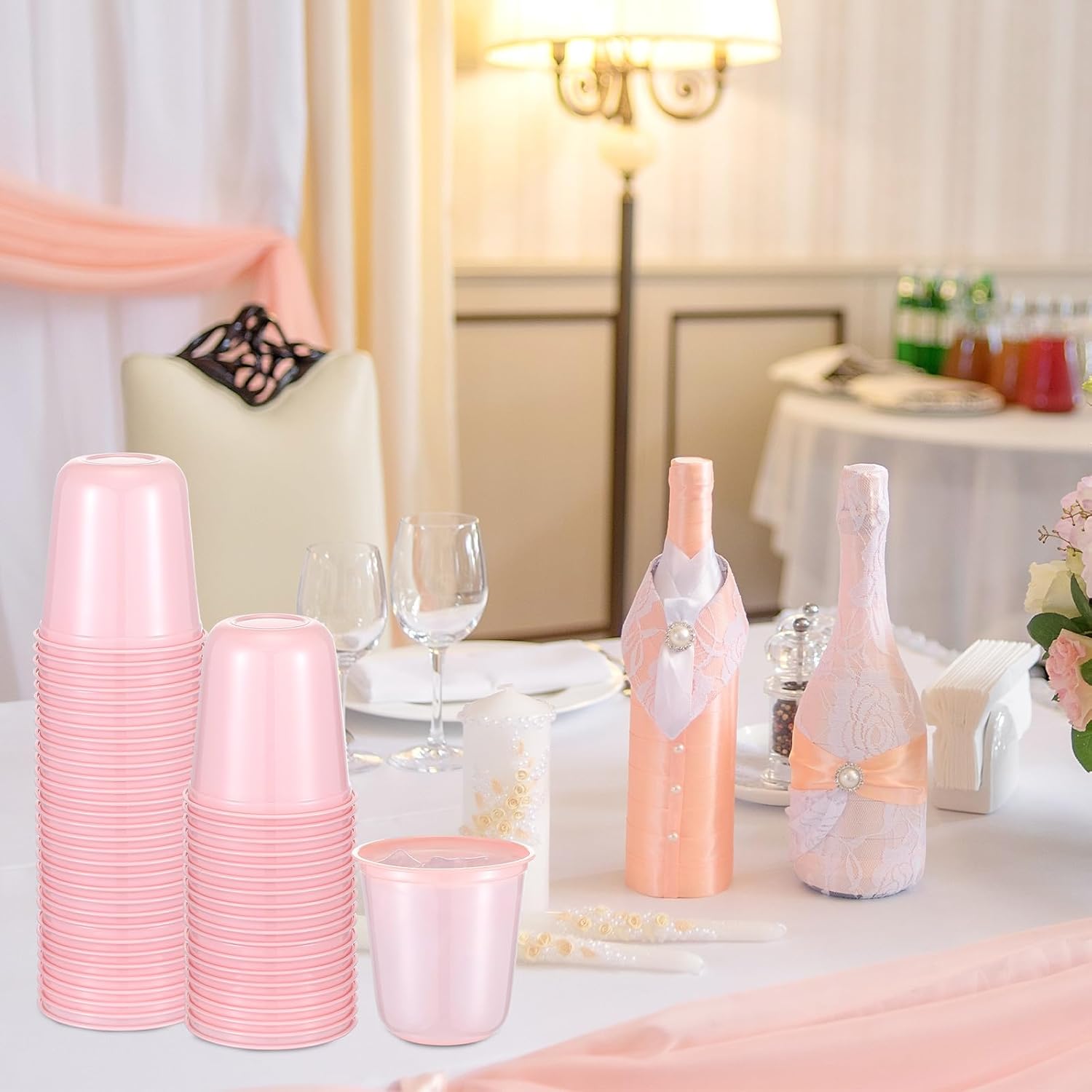50pcs Disposable Stemless Glasses 12oz Crystal Plastic Wine Glasses Clear Classic Pet Cup for Meeting Weddings Birthdays Cocktail Christmas Party Supplies (Pure Pink)