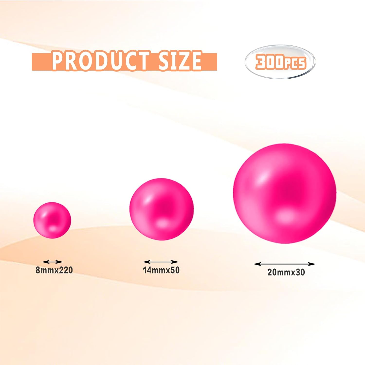 300Pcs Vase Filler Rosepink No Hole Faux Pearl Beads for Vase Filling Decorations, Candle Centerpieces, Wedding Centerpieces, Home Party Decor (8/14/20mm)
