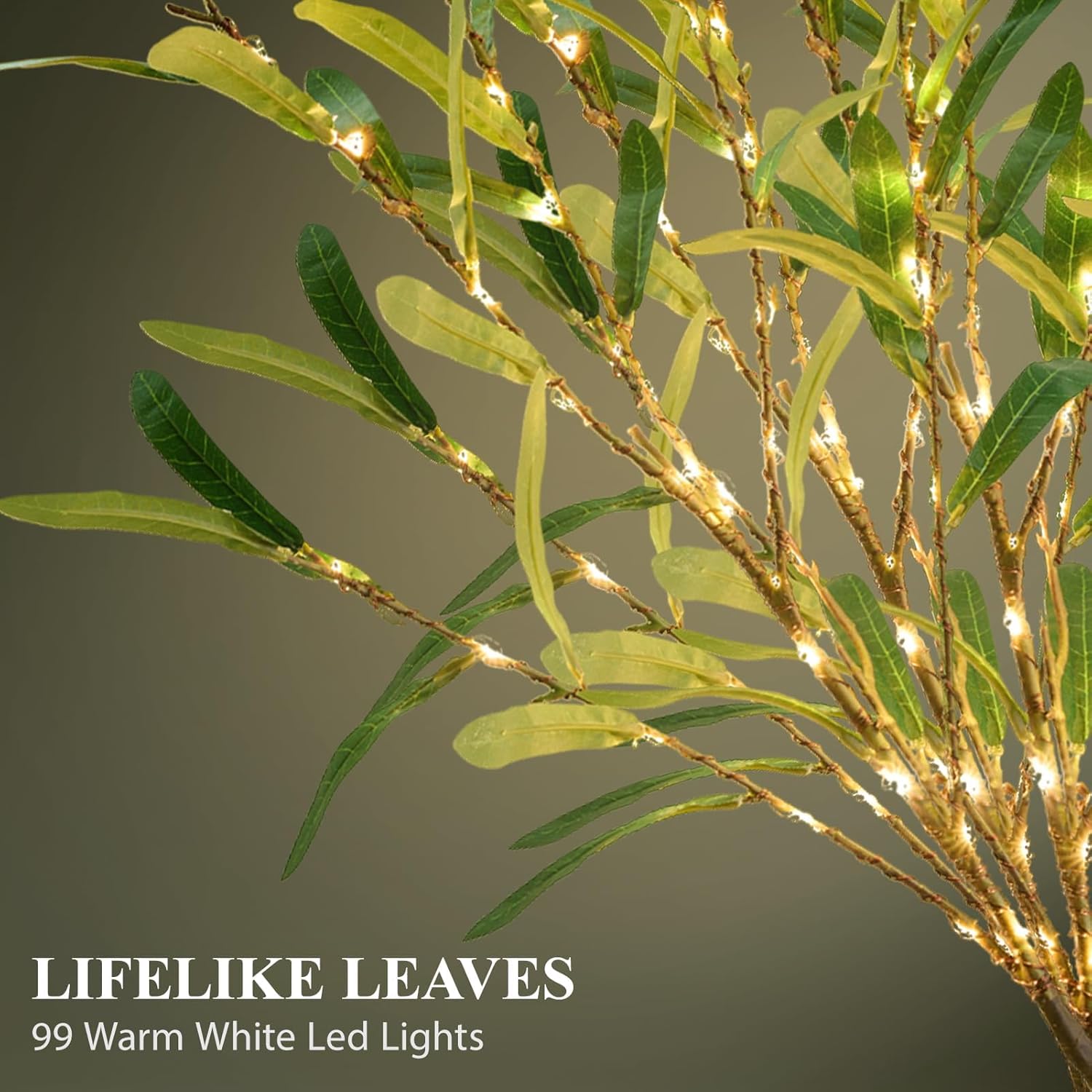 • 【Exquisite Appearance】 Olive tree lights branches are a handcrafted high-quality product with lifelike leaves and bark, you can even clearly see their texture, just like real eucalyptus branches. Its presence will add a splash of vibrant green and soft white light to your home so that your room not only has the warmth of the home but also the vitality of nature.