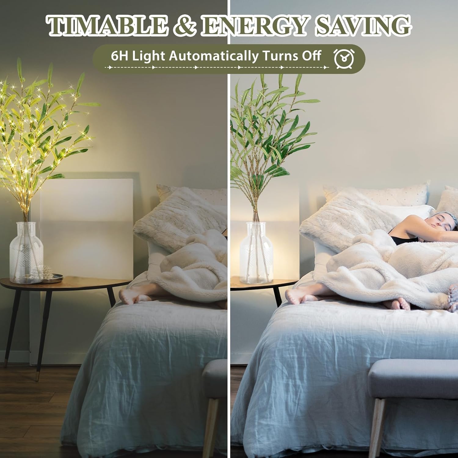 • 【Suitable for a variety of scenes】The olive branch lights can be used as a decoration when the lights are not on during the day, they can be placed in many places such as the living room, study, bedroom, and dining room. At night when the light is on, the light is soft and not harsh and can be used as a night light to accompany you to sleep. This luminous branches light is also perfect for weddings, Christmas, New Year, and party decoration, it can also be used outdoors.