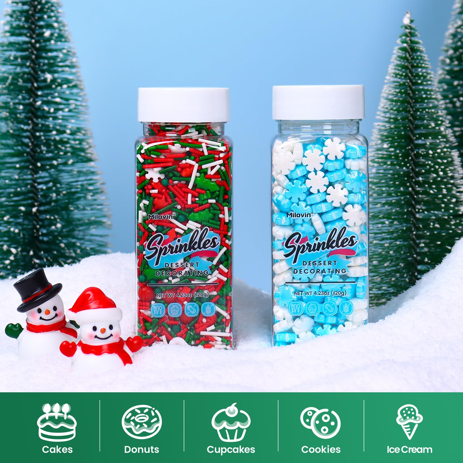 • Christmas Sprinkles for Baking: A bottle of red and green sprinkles mix(120g/4.23oz), whether it's cakes, cupcakes, cookies, ice cream, cake pops, brownies, or any dessert you can dream of; our Christmas sprinkles are your go-to for that extra dash of cheer
