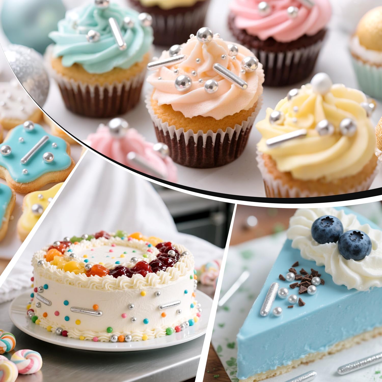 • The Silver Pearl Rods candies are easy to use. These Sprinkles are perfect for adorning cakes, cupcakes, cookies, donuts, waffles, ice cream, and other confections. Metallic Silver Sprinkles can make your baking more pretty.