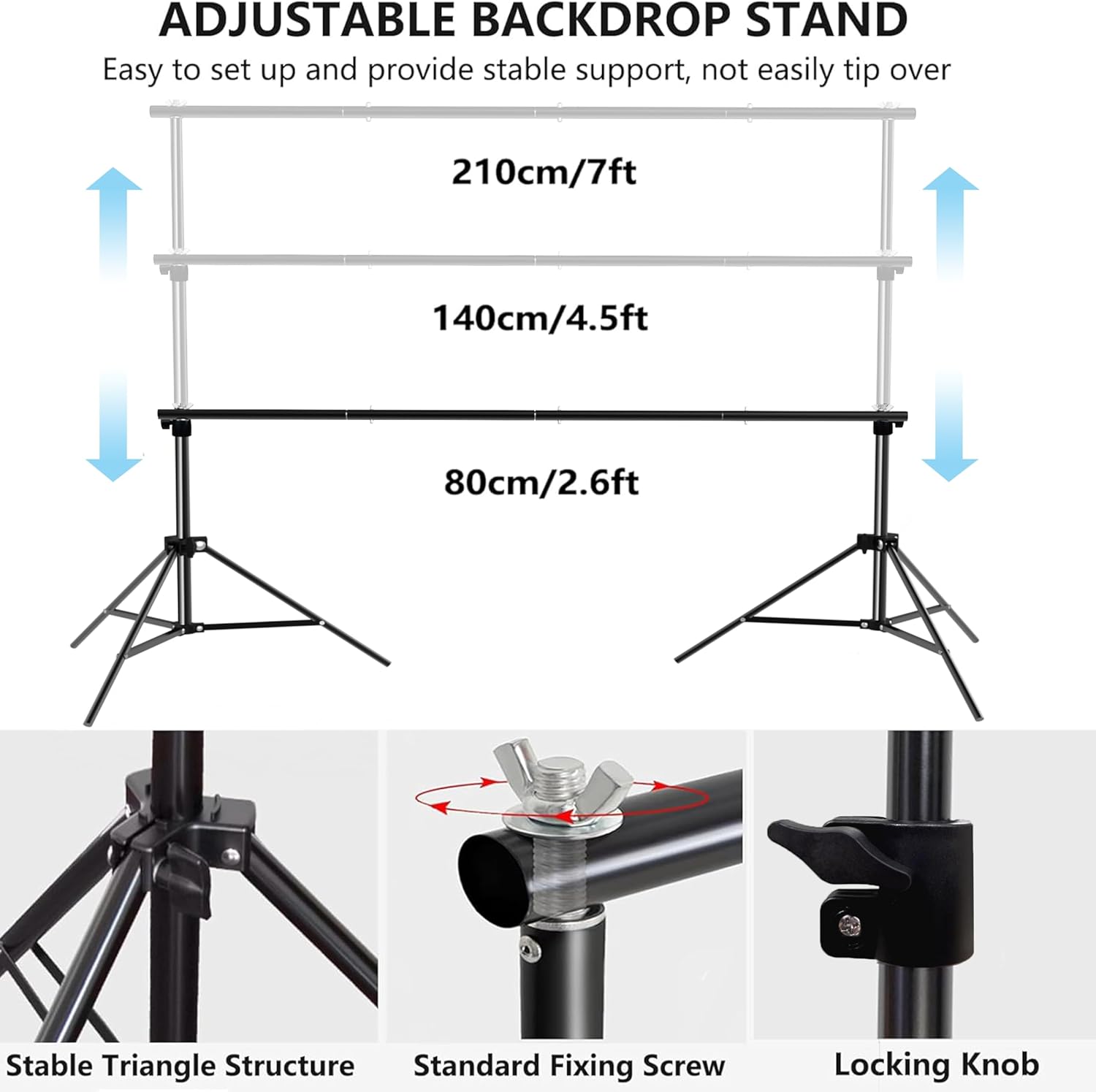 • 【Adjustable Background Support Stand】The photography backdrop stand adopts triangular structure making it more stable to support photographic equipment. And the height is adjustable from 2.7 feet to 7.5 feet.