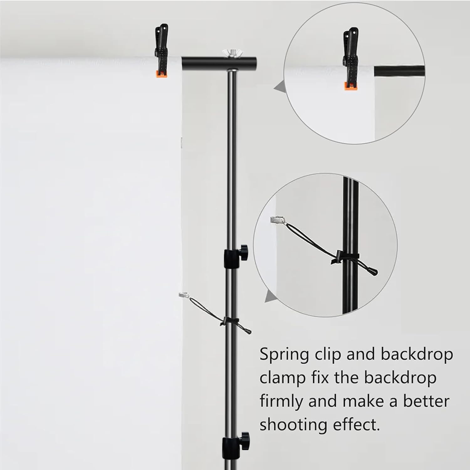 • 【Better Effect with Accessories】Photo backdrop stand kit includes 8 backdrop clamps, 8 spring fixing clips and 2 sandbags. Spring clips and backdrop clamps can fix the backdrop tightly and make a better shooting effect. The sand bag can be used to add weight for stability in windy conditions.