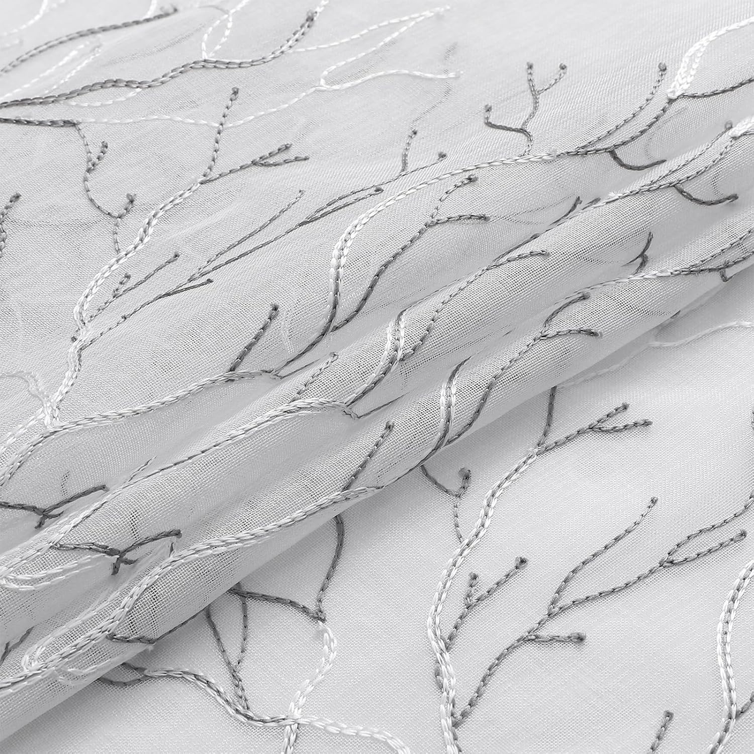 VISIONTEX Sheer Curtains 84 inch Length 2 Panels Set, Decorative Grey Coral Embroidery, Rod Pocket Embroidered Window Drapes for Living Room and Bedroom, 54" x 84"