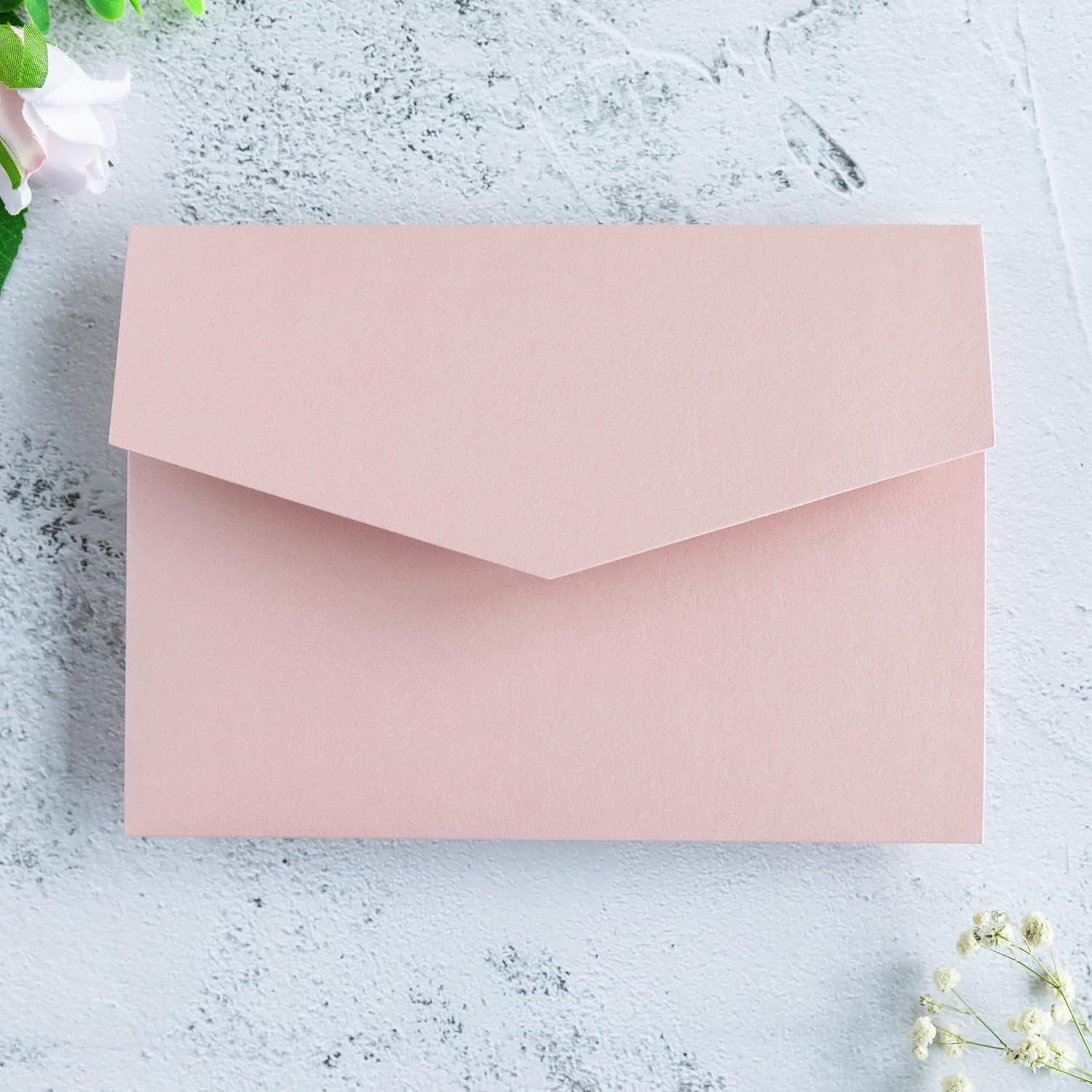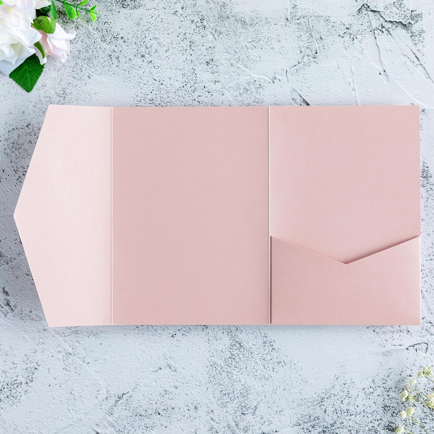 • HIGH QUALITY -- The blush pink tri-fold invitation pockect is made from 250 gsm pearl paper, Very good quality and heavy, not easily deformed, Look simple and elegant