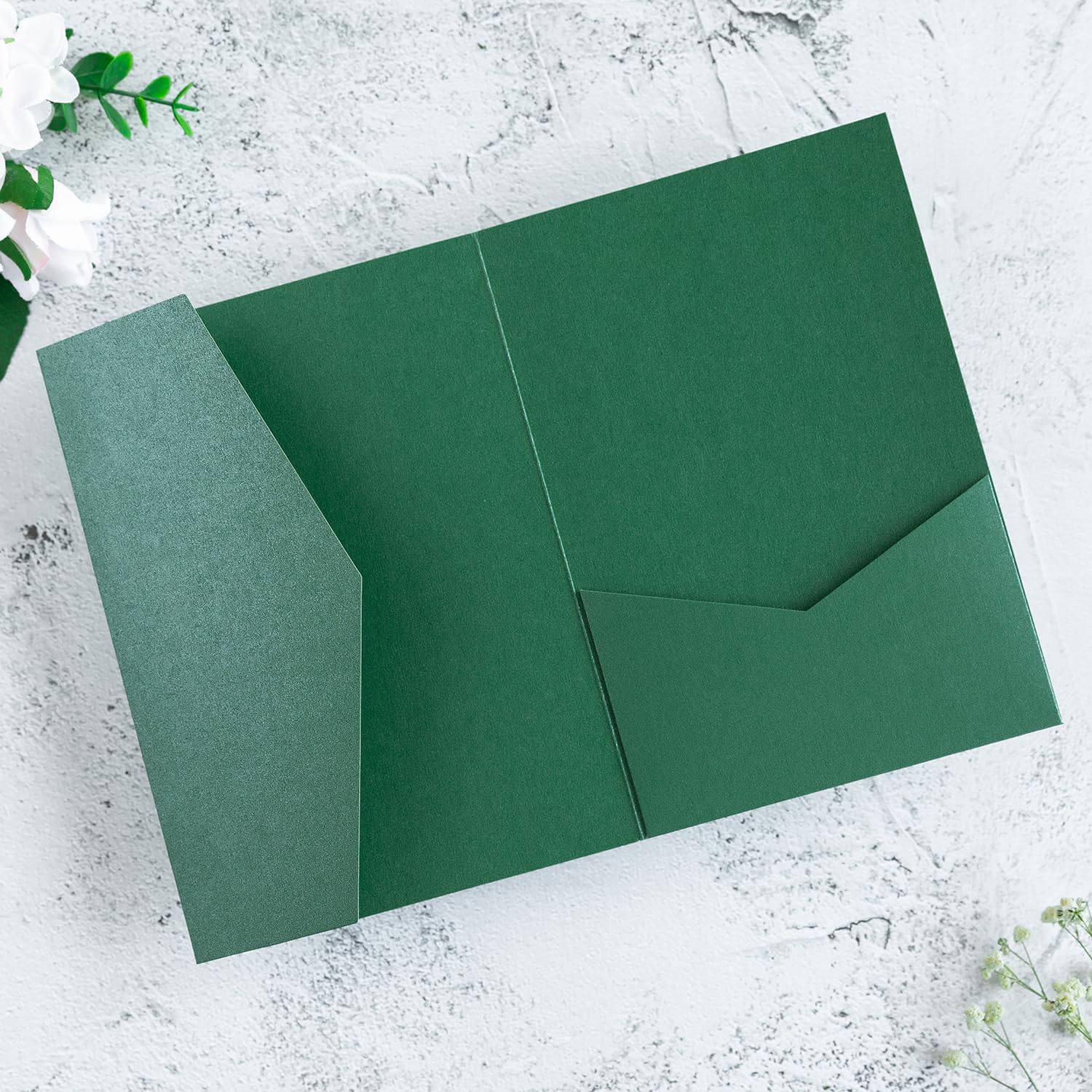• High Quality -- The green tri-fold invitation pockect is made from 250 gsm pearl paper, Very good quality and heavy, not easily deformed, Look simple and elegant.