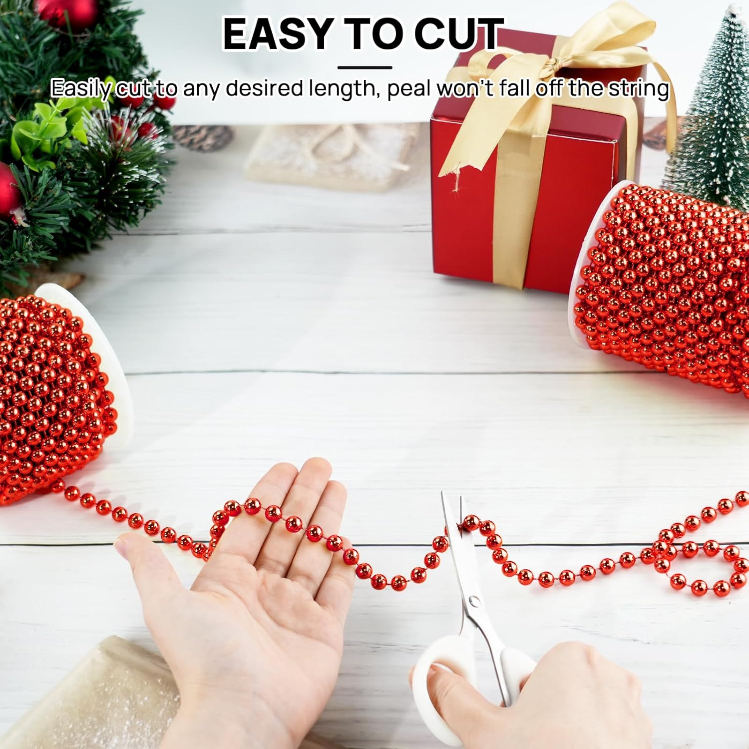 Red 8MM Faux Pearl Garland, 33 Feet Roll Strand Wedding Party Decoration, Christmas Tree Decorations