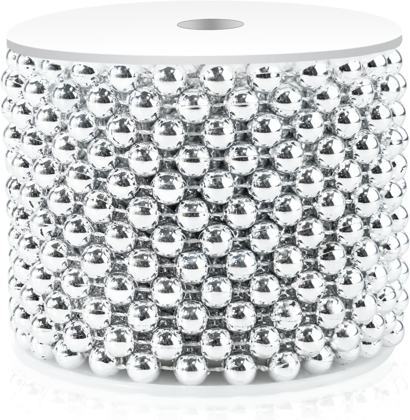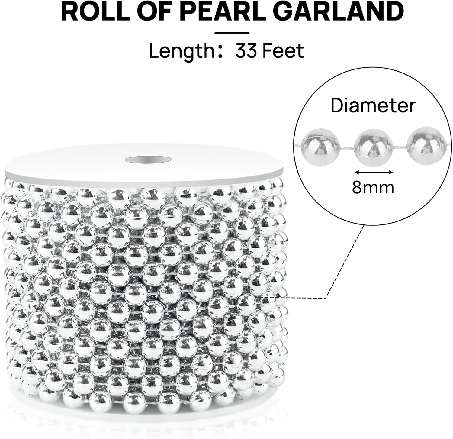 • Silver Pearl Garland - Our string of pearls is 33 feet/11 yards long per roll. Diameter of silver bead: 8mm. We have pearl garlands of different colors and sizes, you can choose according to your needs!