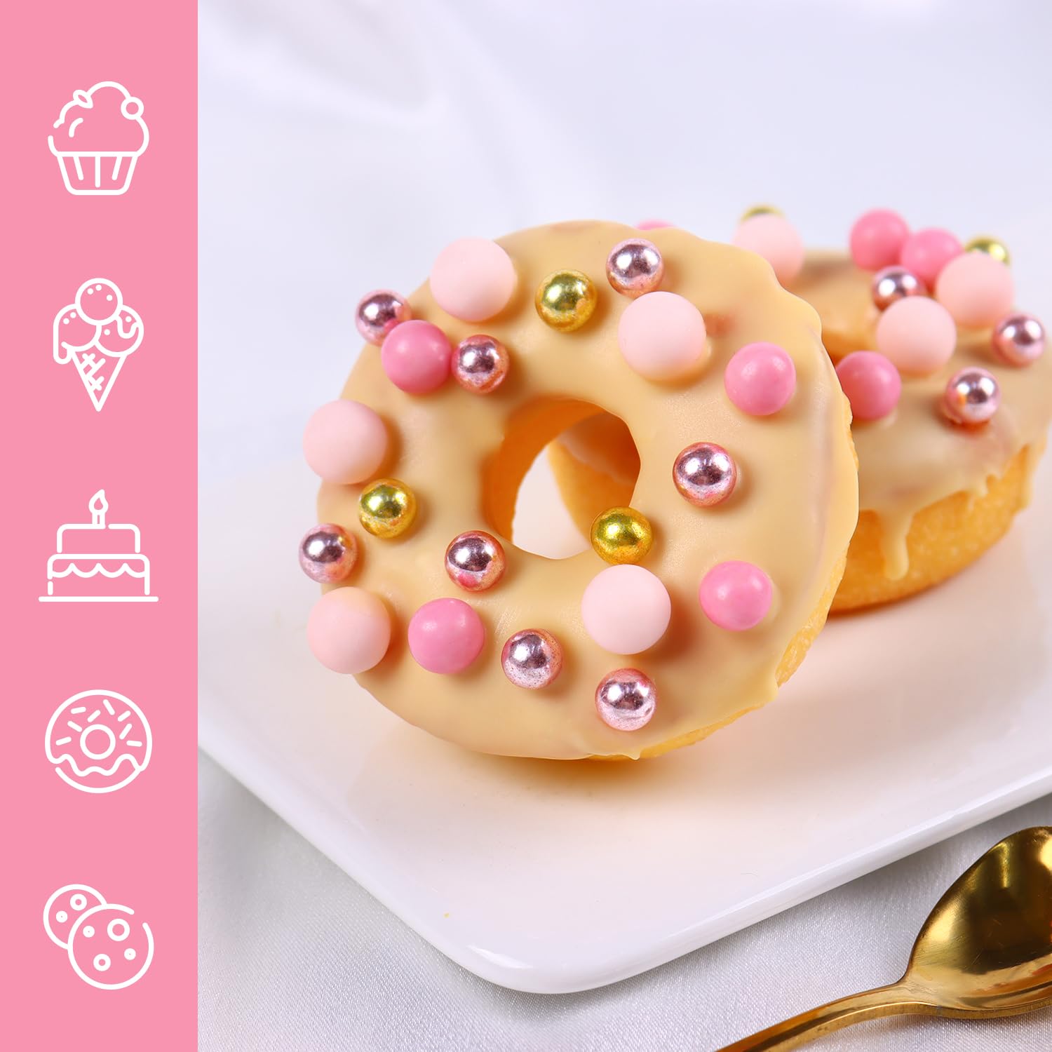 • Explore Our World of Sprinkles! - These rose gold and pink sugar pearl sprinkles can add extra fun to your cakes, cupcakes or other desserts, helping them become irresistible masterpieces.