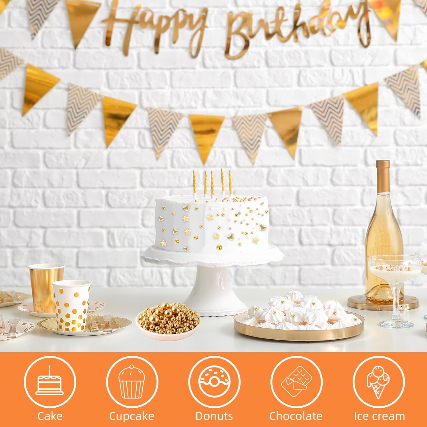 Kasvan Gold Pearl Sugar Sprinkles, 6 Sizes Mix for Cake Decorating, 230g/8.1oz, Ice Cream Toppings and Cookie Decorating, Wedding Party Chirstmas Supplies (Gold)