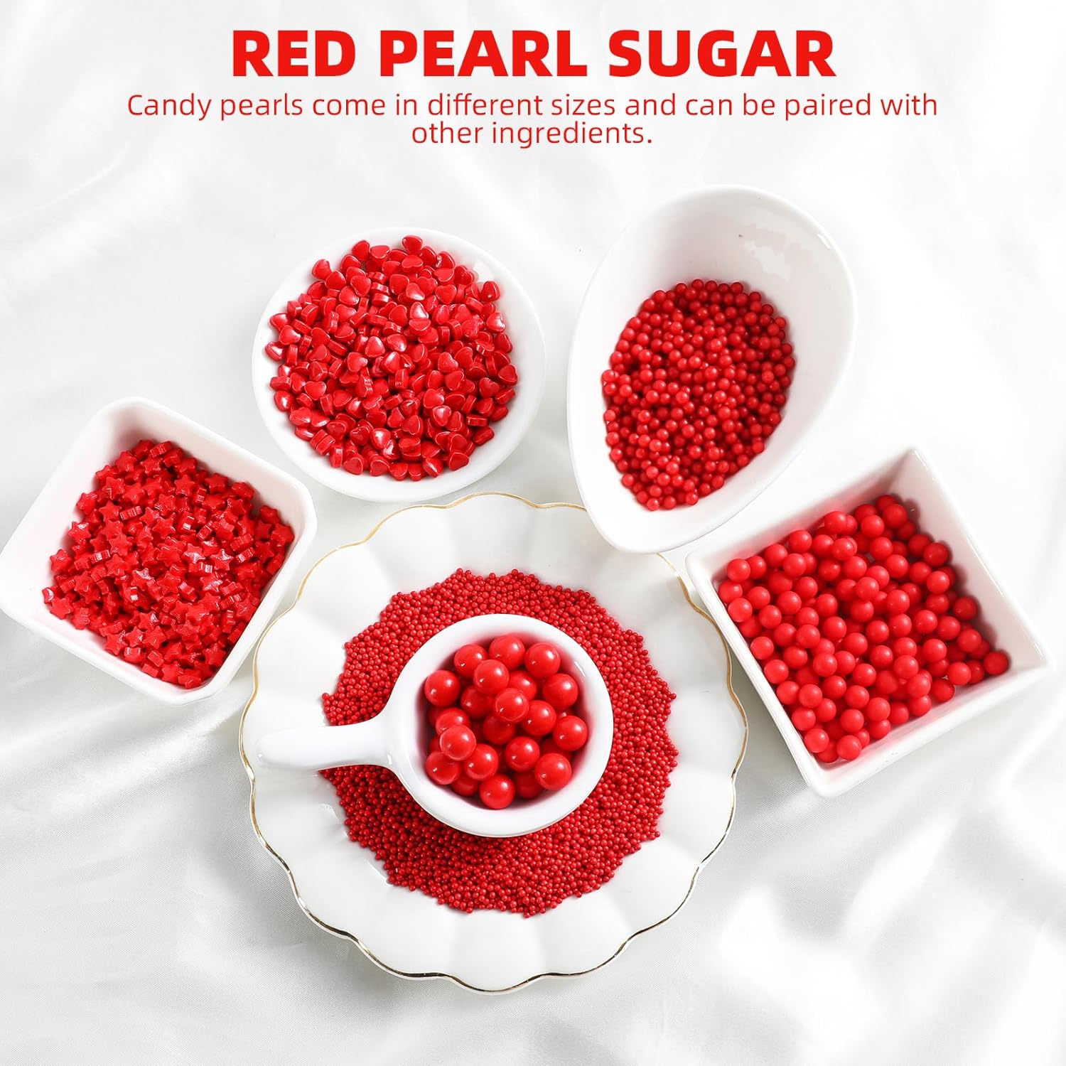• ✨PACKAGE INCLUDES: 1 edible bottle of Red pearl sugar, 130g/4.58 oz. The main ingredients of sugar pearls are: sugar, beetroot, spirulina, carnauba wax, gluten free, nut free.