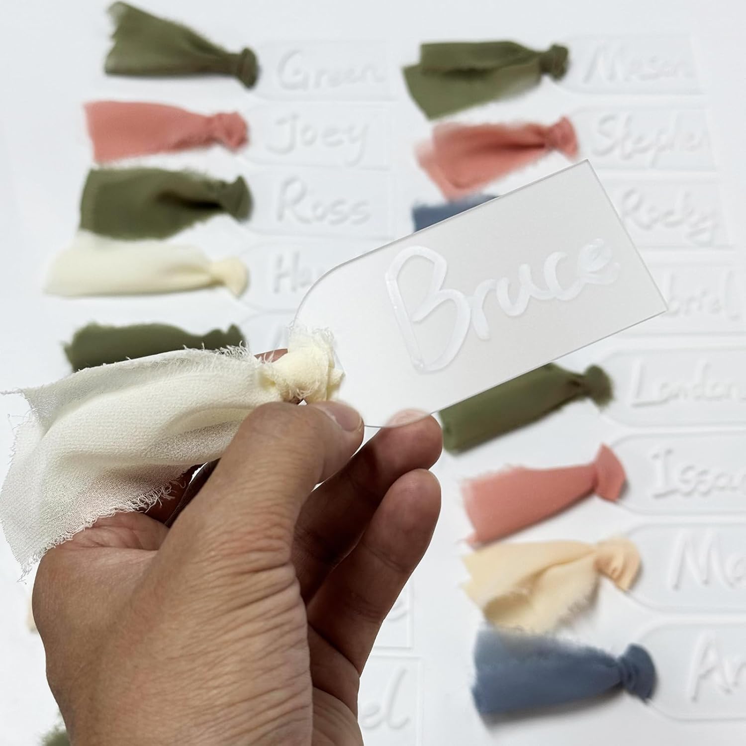 50Pcs Acrylic Place Card for Wedding Frosting Acrylic DIY Table Seating Cards Wedding Supplies with White Ribbon