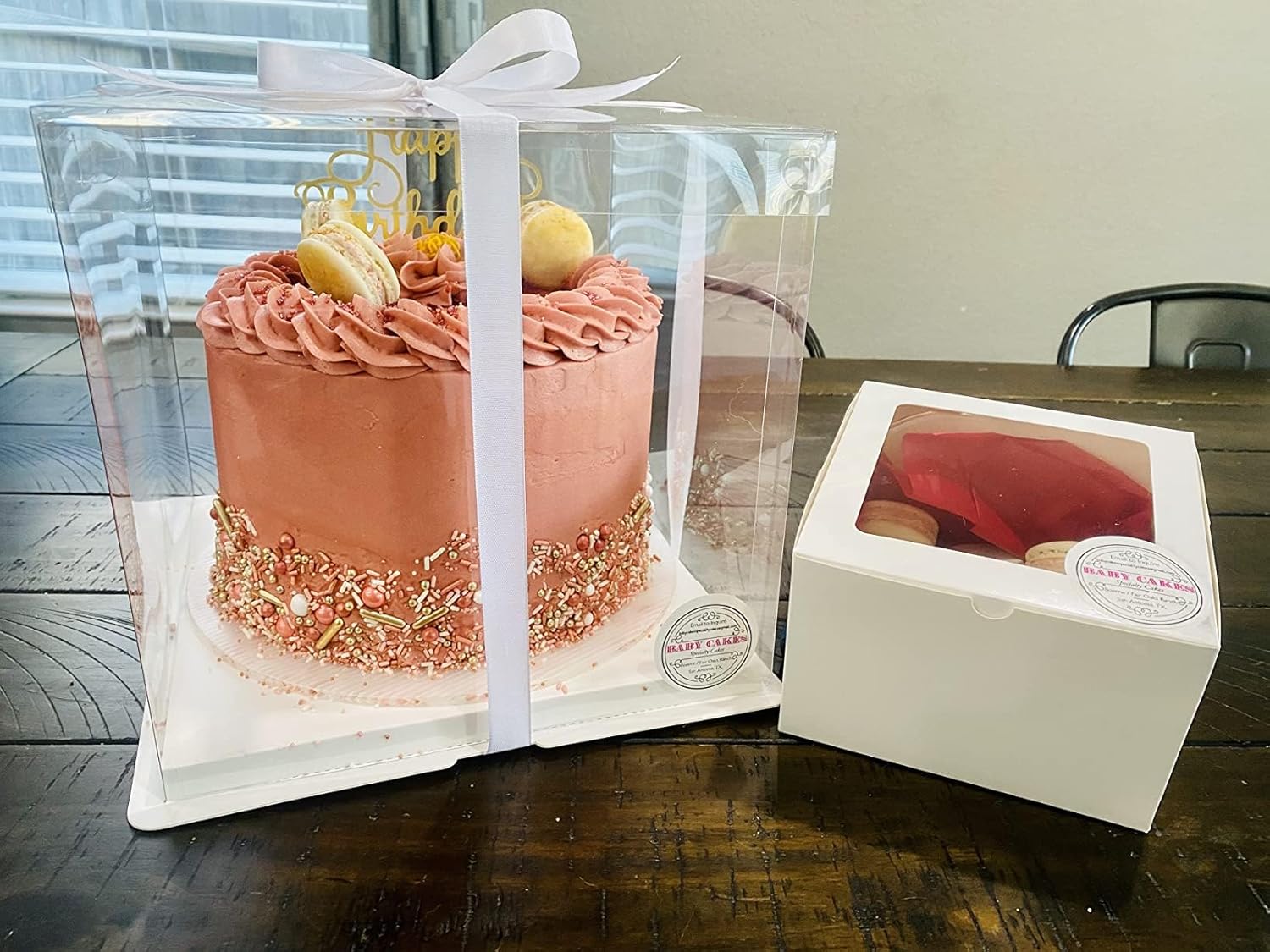 • 【Multi-purpose】-The cake box is elegant, Sturdy and durable. Very suitable for placing cakes, desserts, biscuits, chocolates, cupcakes, handmade goods and gifts, suitable for occasions such as for wedding, christening, anniversary, engagement, birthday, halloween, christmas, party decoration,etc