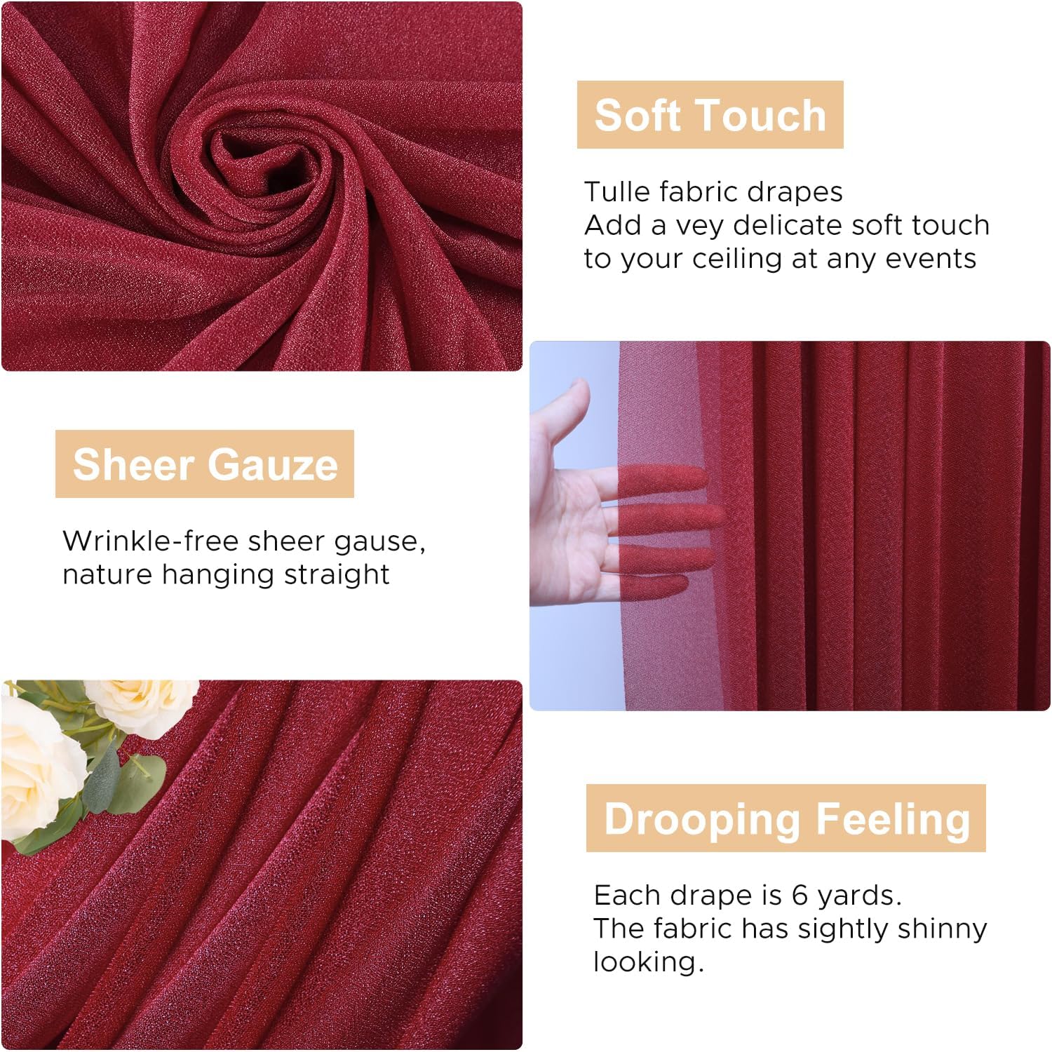 Wokceer Wedding Arch Draping Fabric 6 Panels 28.7" x 20FT Burgundy Drapes Sheer Fabric Backdrop Arch Draping Fabric for Wedding Ceremony Birthday Party Bridal Shower Decoration