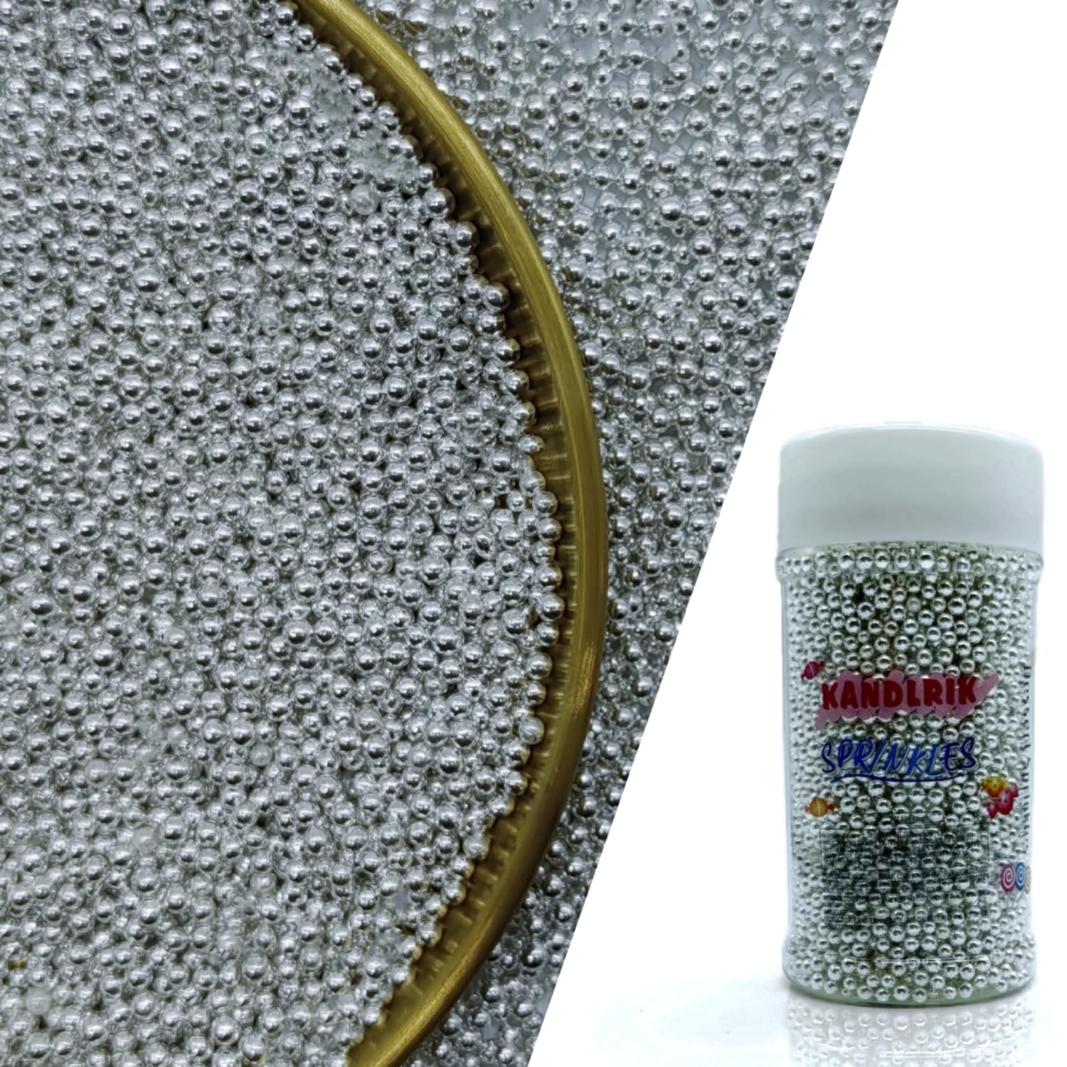 Edible Silver Pearl Sugar Sprinkles Candy 2mm Mini Pearls Cake Decorations Cupcake Toppers Cookie Decorating Perfect for Wedding Party Valentine Halloween Christmas Supplies 3OZ
