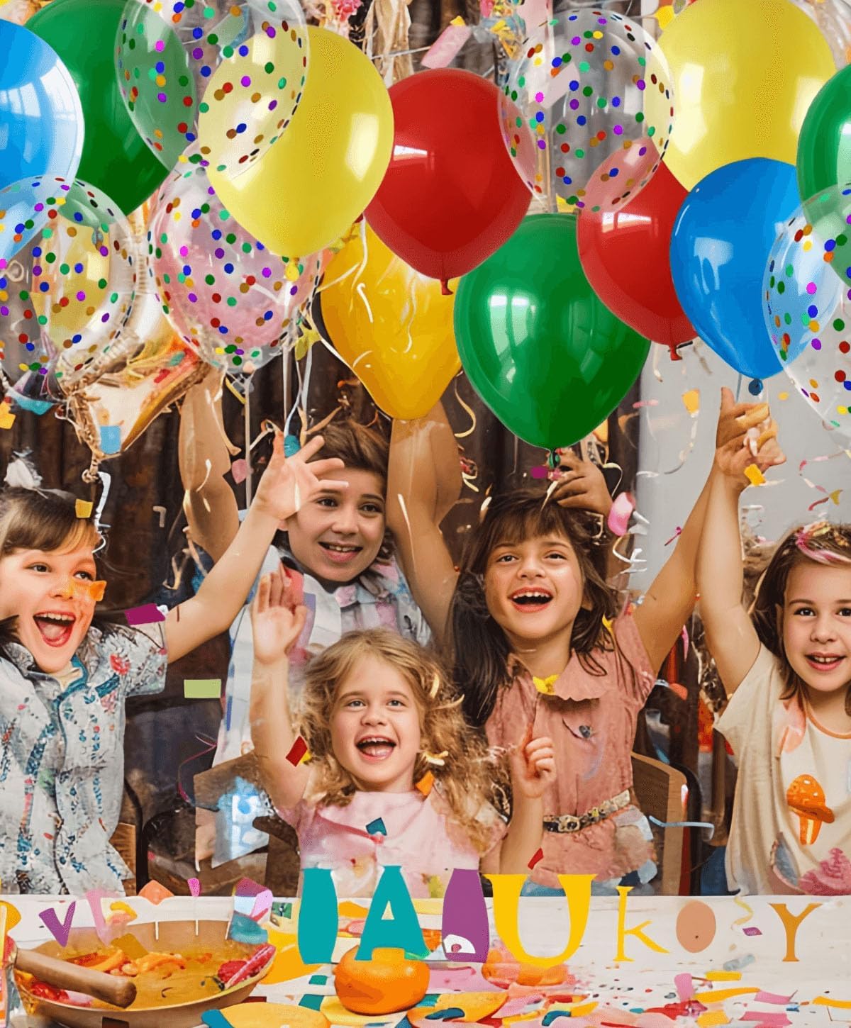 • Vibrant Balloon Set: This 300-piece set, 60 of each color, includes 12-inch Red Yellow Blue Green Balloons and Colourful Confetti Balloons