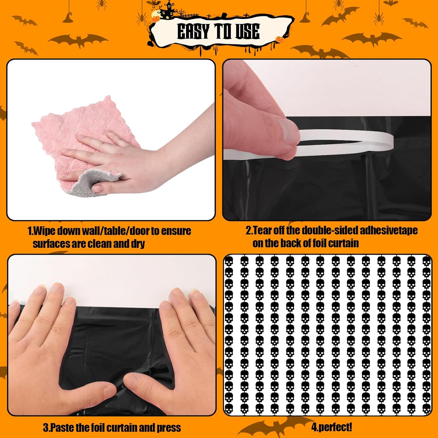 • PREMIUM MATERIAL- This Halloween black Skull tinsel backdrop is made of high-quality shiny tinsel, non-toxic, odorless, and non-fading, safe for families with children and pets. Just transform your home into a shining streamers happy birthday decorations, and enjoy the party.