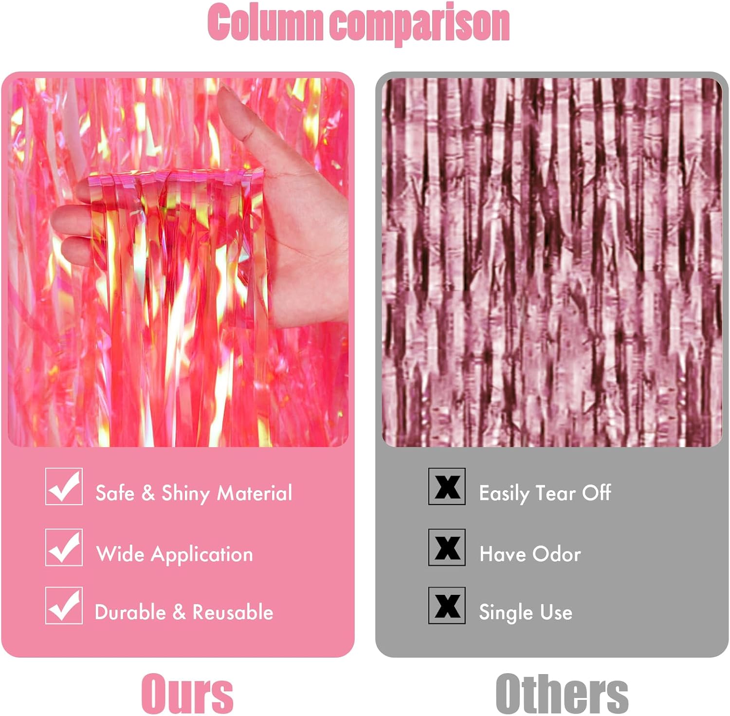 • PREMIUM MATERIAL- This clear pink tinsel backdrop is made of high-quality shiny tinsel, non-toxic, odorless, and non-fading, safe for families with children and pets. Just transform your home into a shining streamers happy birthday decorations, and enjoy the party.