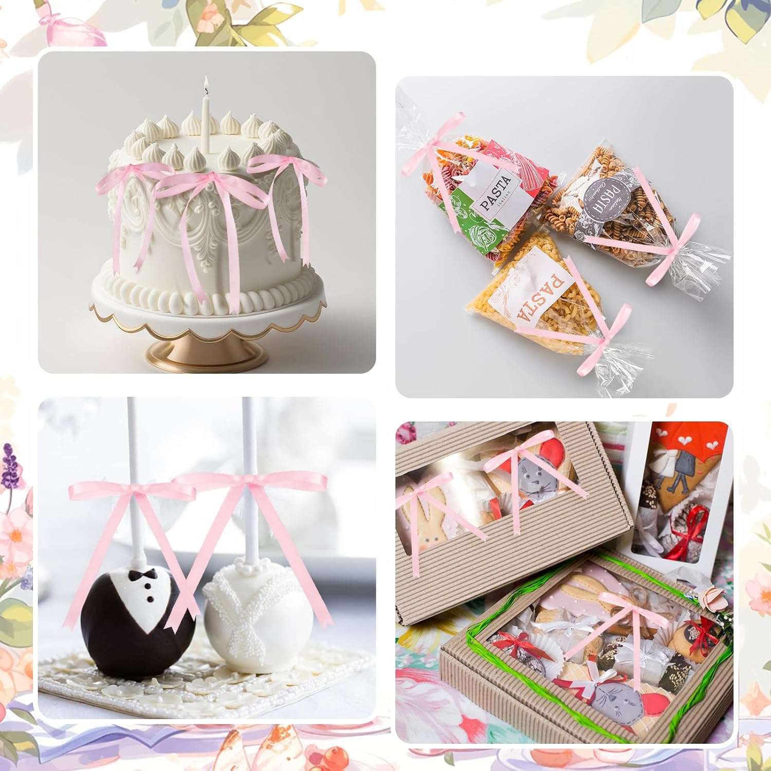 • Multipurpose Decoration: our pre tied bows can be utilized in many ways; From fixing various plastic bags like snack bags, gift bags, candy bags, cookie bag, bread bag and more, to decorating Christmas trees, gift boxes, gift baskets, bottles, invitation cards, hairpins, scrapbooks and other DIY projects; You can use your imagination to make fun and beautiful objects with family and friends