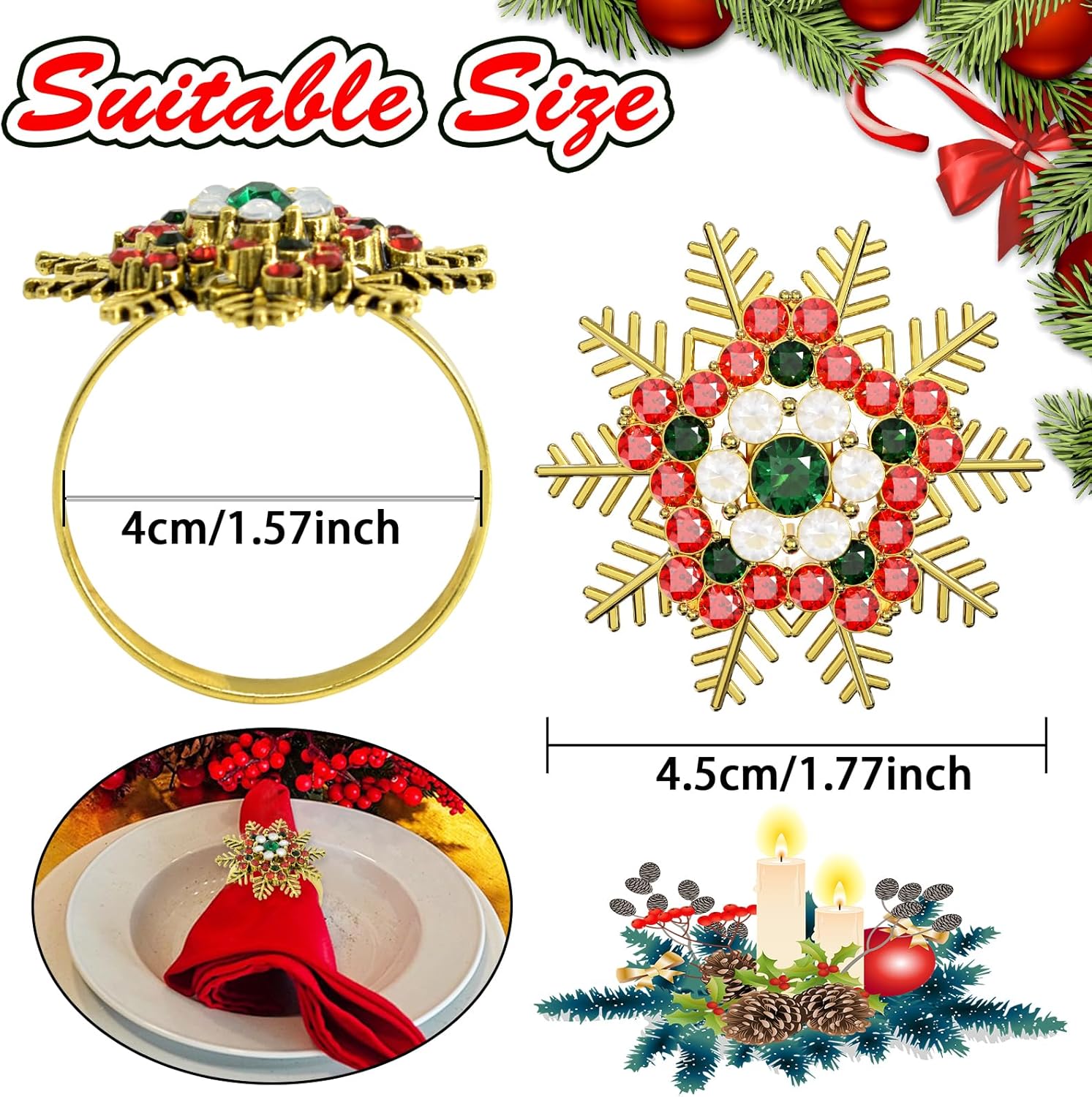 • Beautiful Napkin Rings: You will get 8 napkin ring holders, colorful Snowflake design, beautifully romantic, perfect for Christmas themed dinner parties, beautiful rhinestones sparkle in the light, giving you a nice feeling while decorating your favorite napkins.