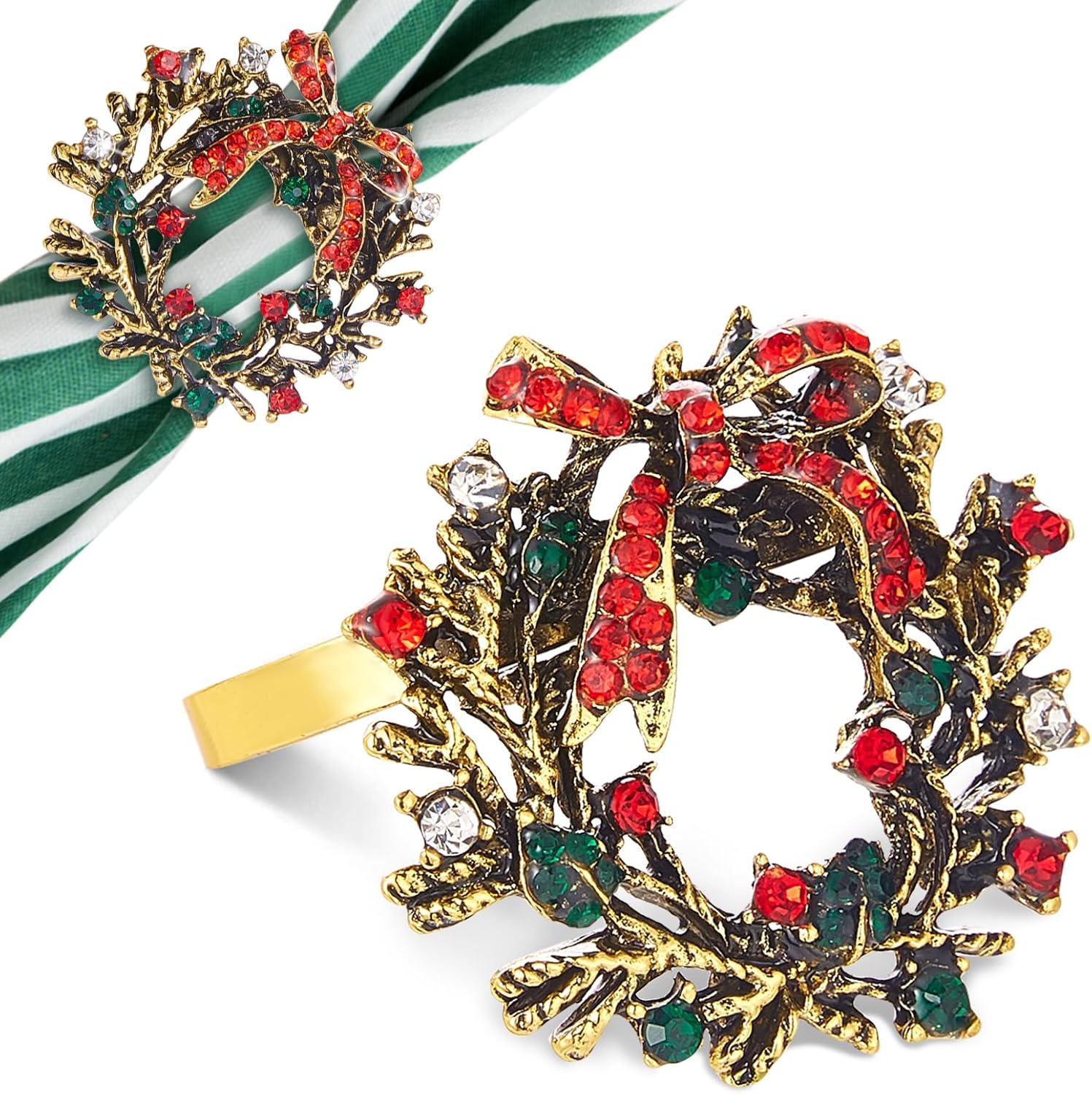 • 8PCS Delicate Xmas Napkin Rings: You will recieved set of 8 stunning rhinestone-studded wreath napkin rings, which are gorgeous and can make your Christmas table, wedding reception, Valentine's party and daily dinner beautiful and classy.