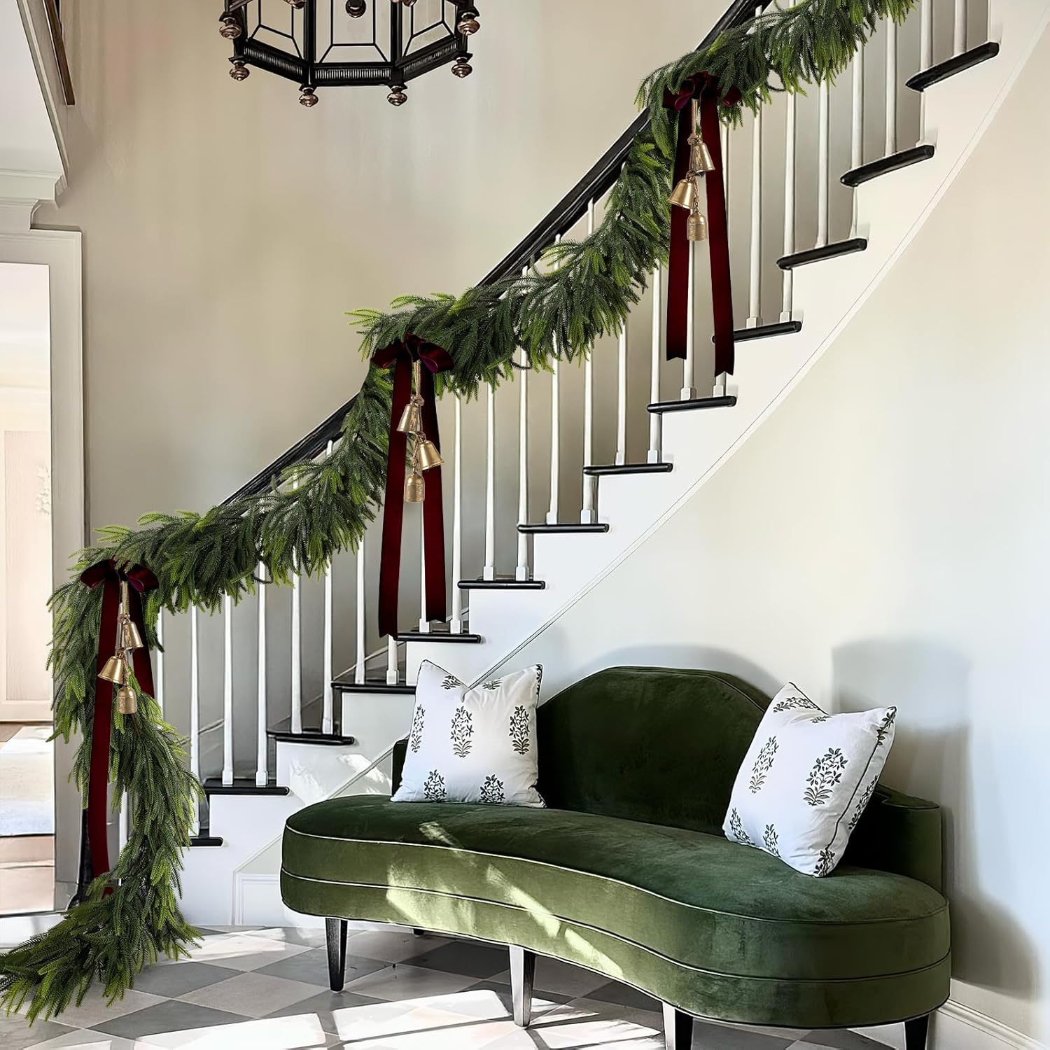 • Real Touch Norfolk Pine Garland: Each pine needle on the artificial pine garland realistic transitions from light green to dark green, mimicking the color of Norfolk pine. No need to spend time on maintenance, xmas garland is always fresh and will not rot