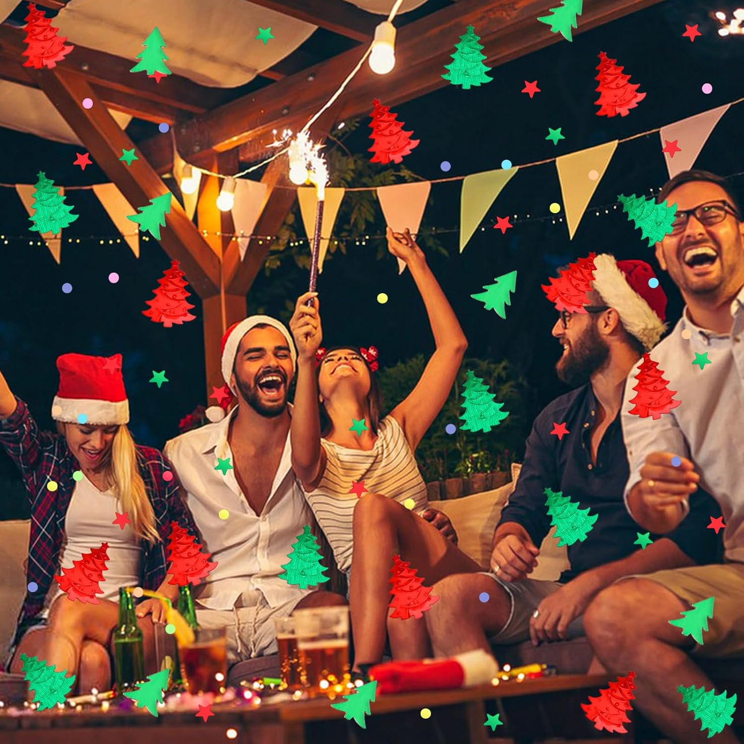 • Cute Christmas Themed Styles: Merry Christmas party confetti is designed with large red and green Christmas trees and small green Christmas trees, red and green five-pointed stars and colorful small dots, which help you decorate various Christmas parties in the Christmas theme