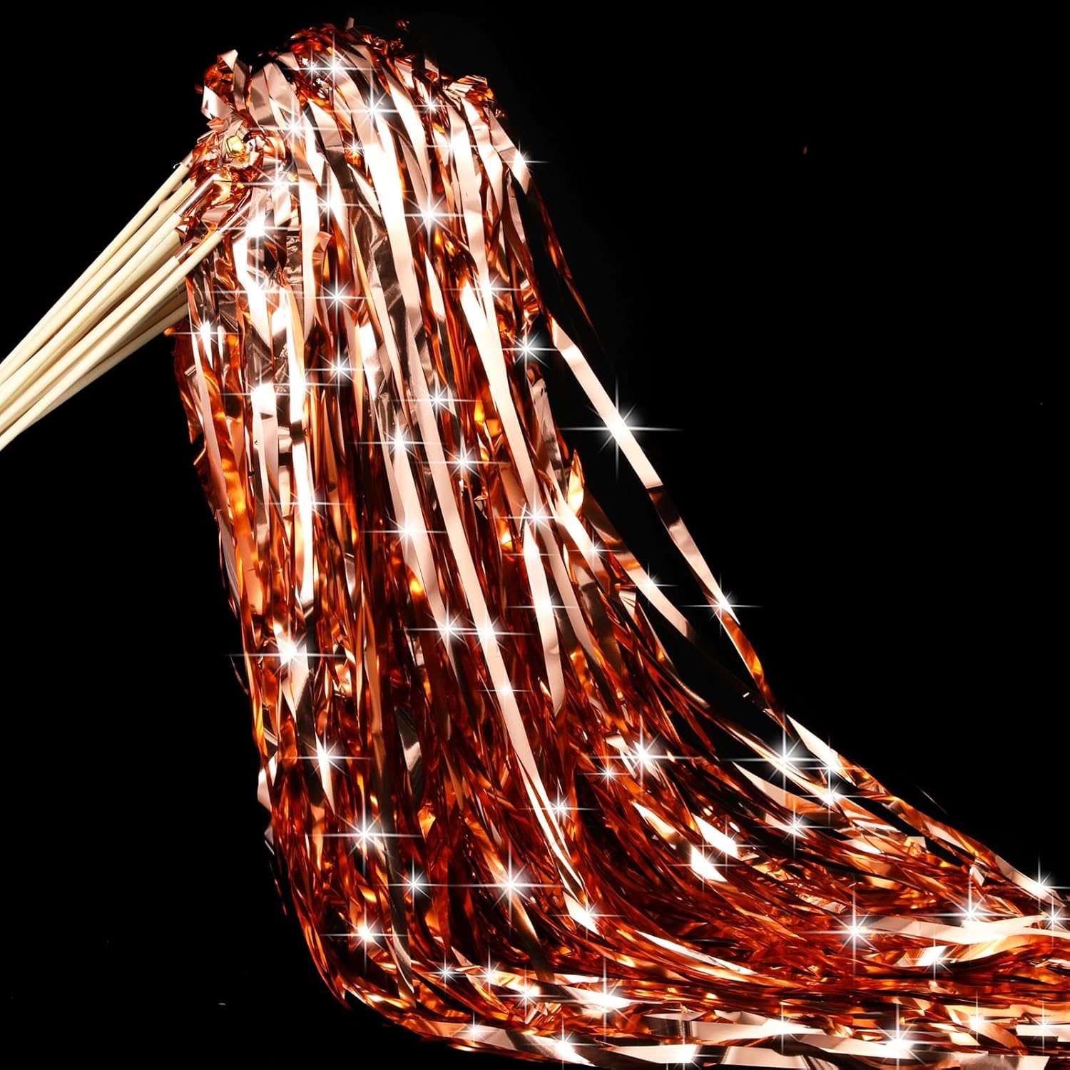 50 Pcs Wedding Fairy Wands with Bells Foil Tinsel Ribbon Stick Wands Tinsel Party Streamers with Bell Glittery Bridal Wedding Send Off Ideas Holiday Celebration (Rose Gold)