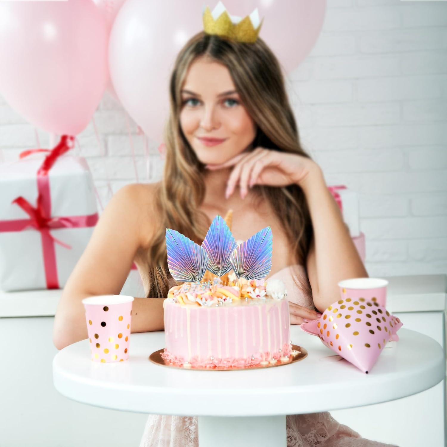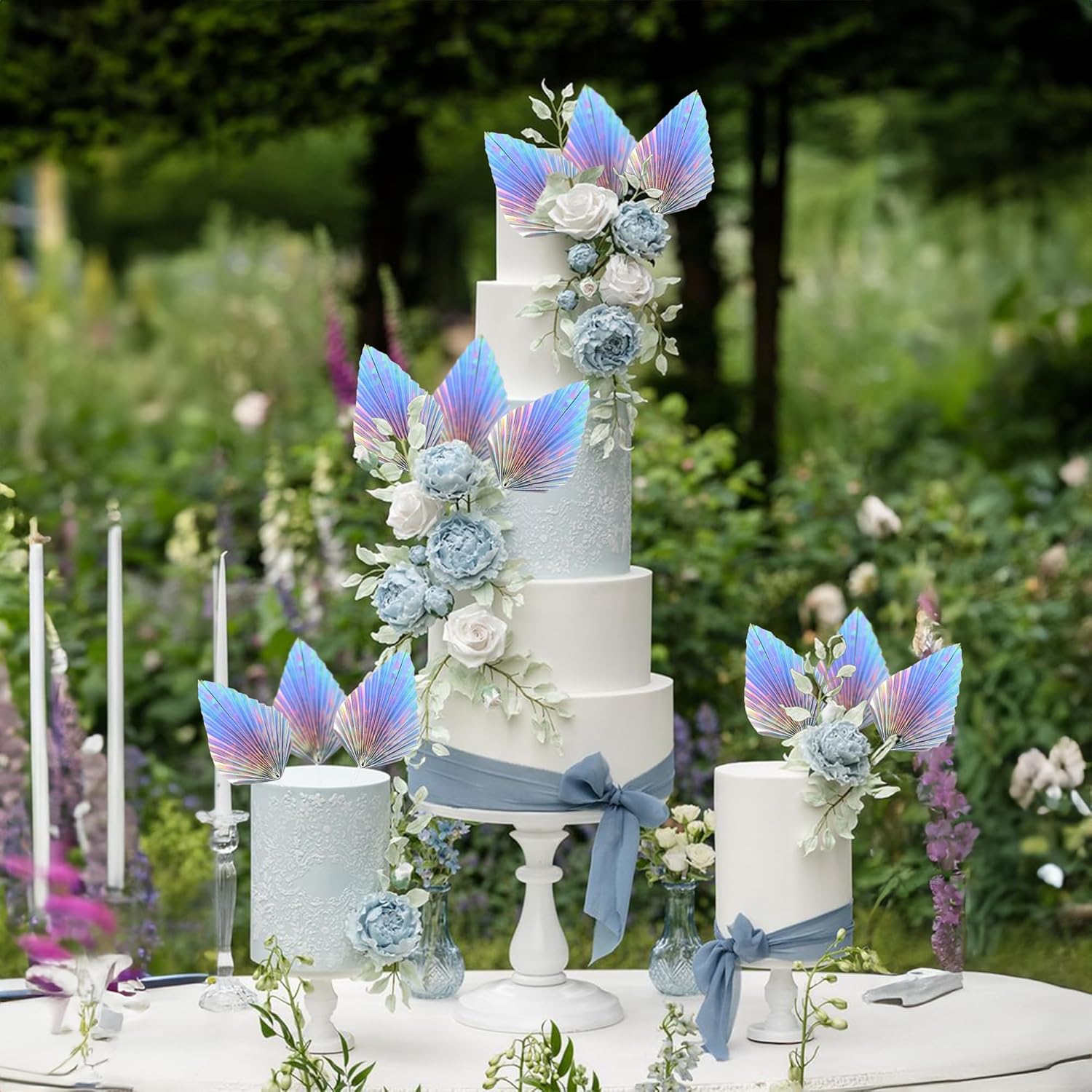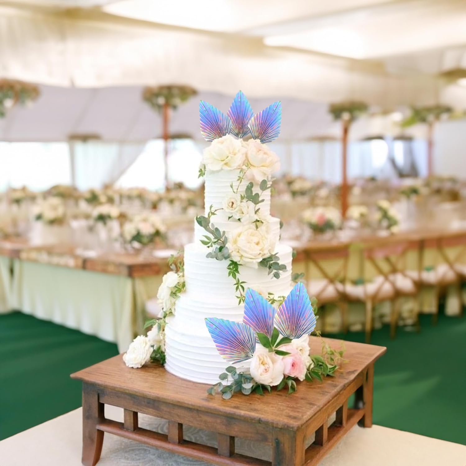 Ephlyn 6Pcs Paper Palm Leaves Fan Cake Toppers Palm Leaf Fan Cake Picks Craft DIY Fan Cupcake Toppers Palm Spear Leaves Cake Decorations for Baby Shower Wedding Birthday Party Decor Supplies Colorful