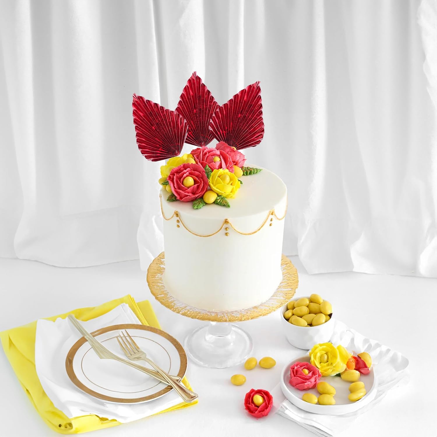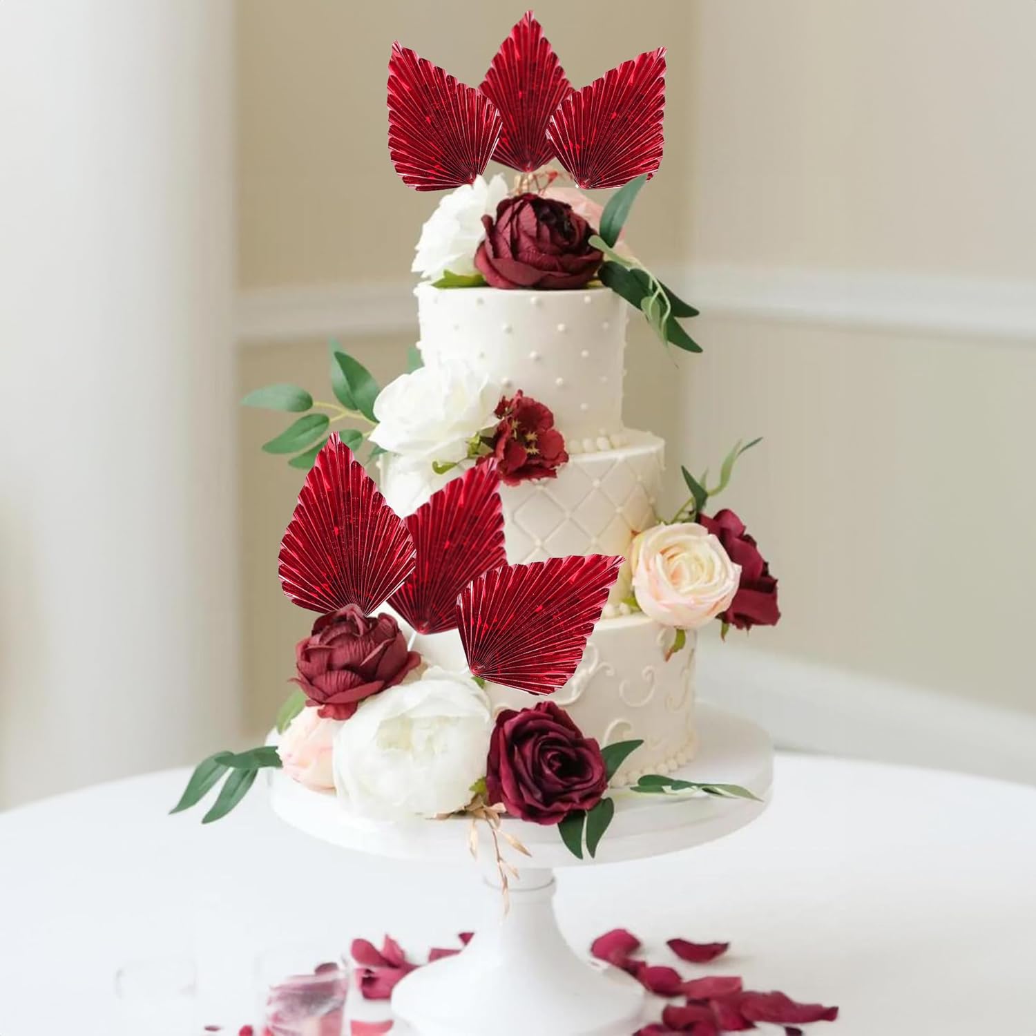 Ephlyn 6Pcs Paper Palm Leaves Fan Cake Toppers Palm Leaf Fan Cake Picks Craft DIY Fan Cupcake Toppers Palm Spear Leaves Cake Decorations for Baby Shower Wedding Birthday Party Supplies Bright Red
