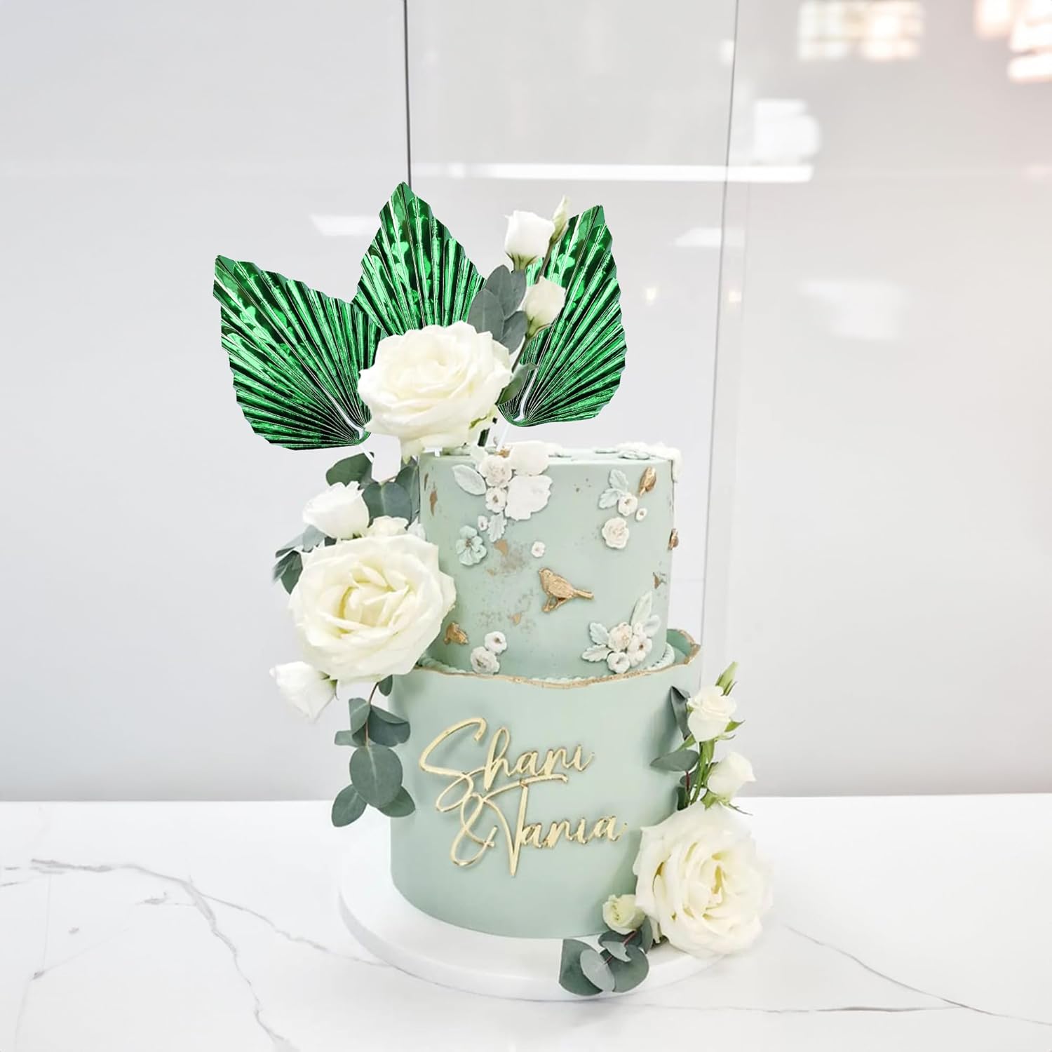 Ephlyn 6Pcs Paper Palm Leaves Fan Cake Toppers Palm Leaf Fan Cake Picks Craft DIY Fan Cupcake Toppers Palm Spear Leaves Cake Decorations for Baby Shower Wedding Birthday Party Supplies Bright Green