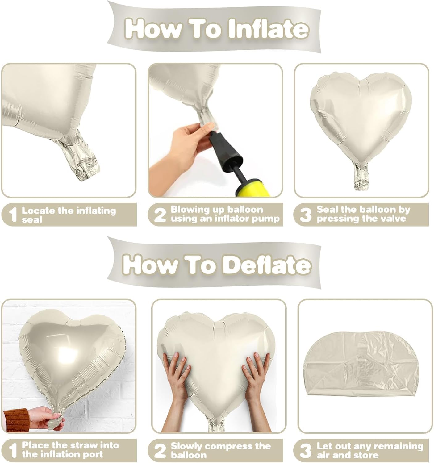 • Easy Setup: Inflate the baby pink white heart balloons with a balloon pump or helium tank. After inflating, secure the baby pink white heart balloons with the included ribbon for a polished look. These baby pink white heart balloons are easy to assemble and disassemble, making decorating quick and effortless.