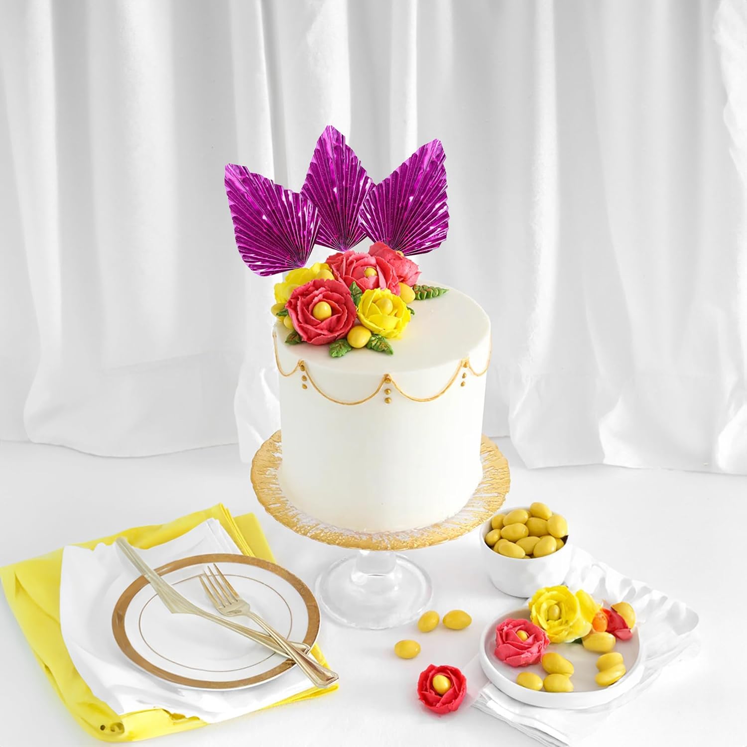 Ephlyn 6Pcs Paper Palm Leaves Fan Cake Toppers Palm Leaf Fan Cake Picks Craft DIY Fan Cupcake Toppers Palm Spear Leaves Cake Decorations for Baby Shower Wedding Birthday Party Supplies Bright Rose Red
