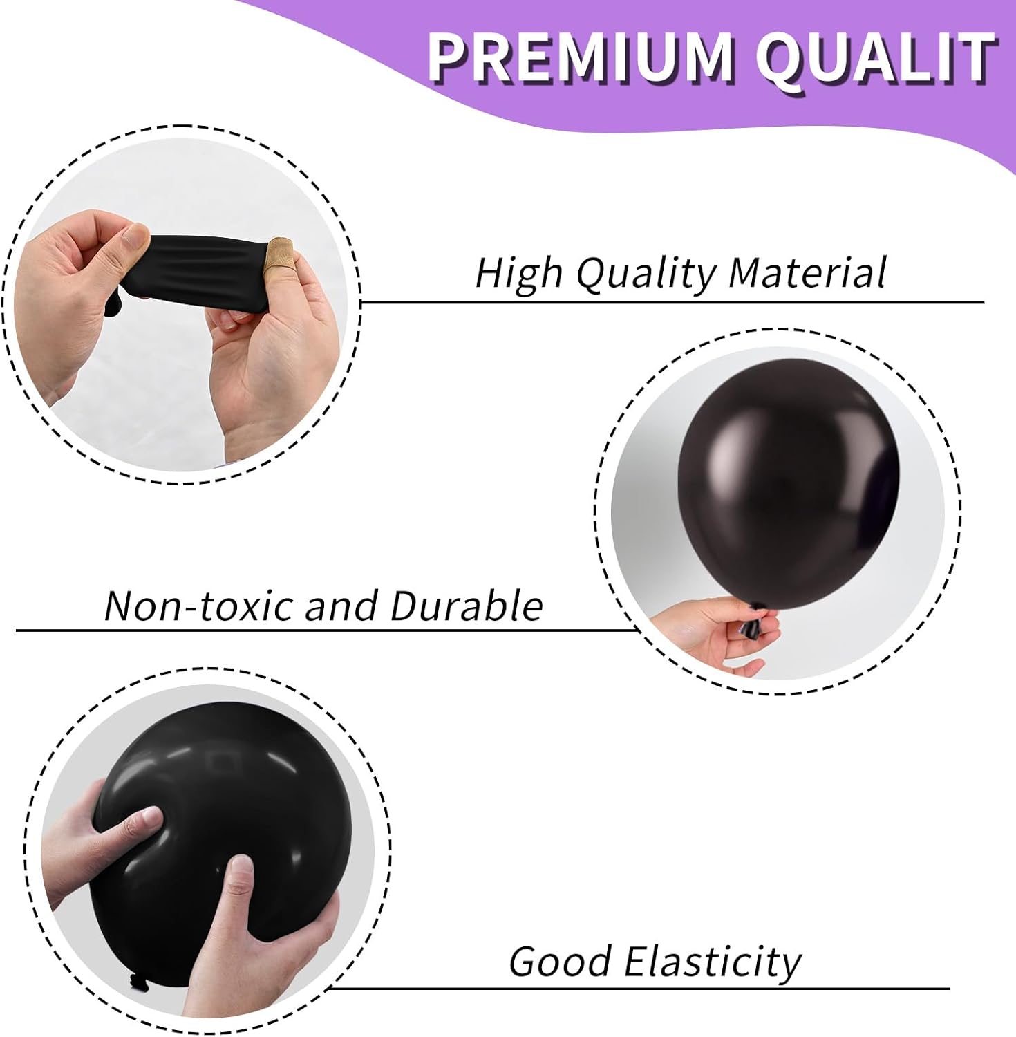 • Premium Quality: Our purple black balloons are crafted from quality latex, it offer superior elasticity and persistence, ensuring they are less likely to burst. No strong odor, children can use them with confidence. Suitable for any event, these balloons will add a reliable, vibrant touch to your celebration. Enjoy festivities with our superior balloons!
